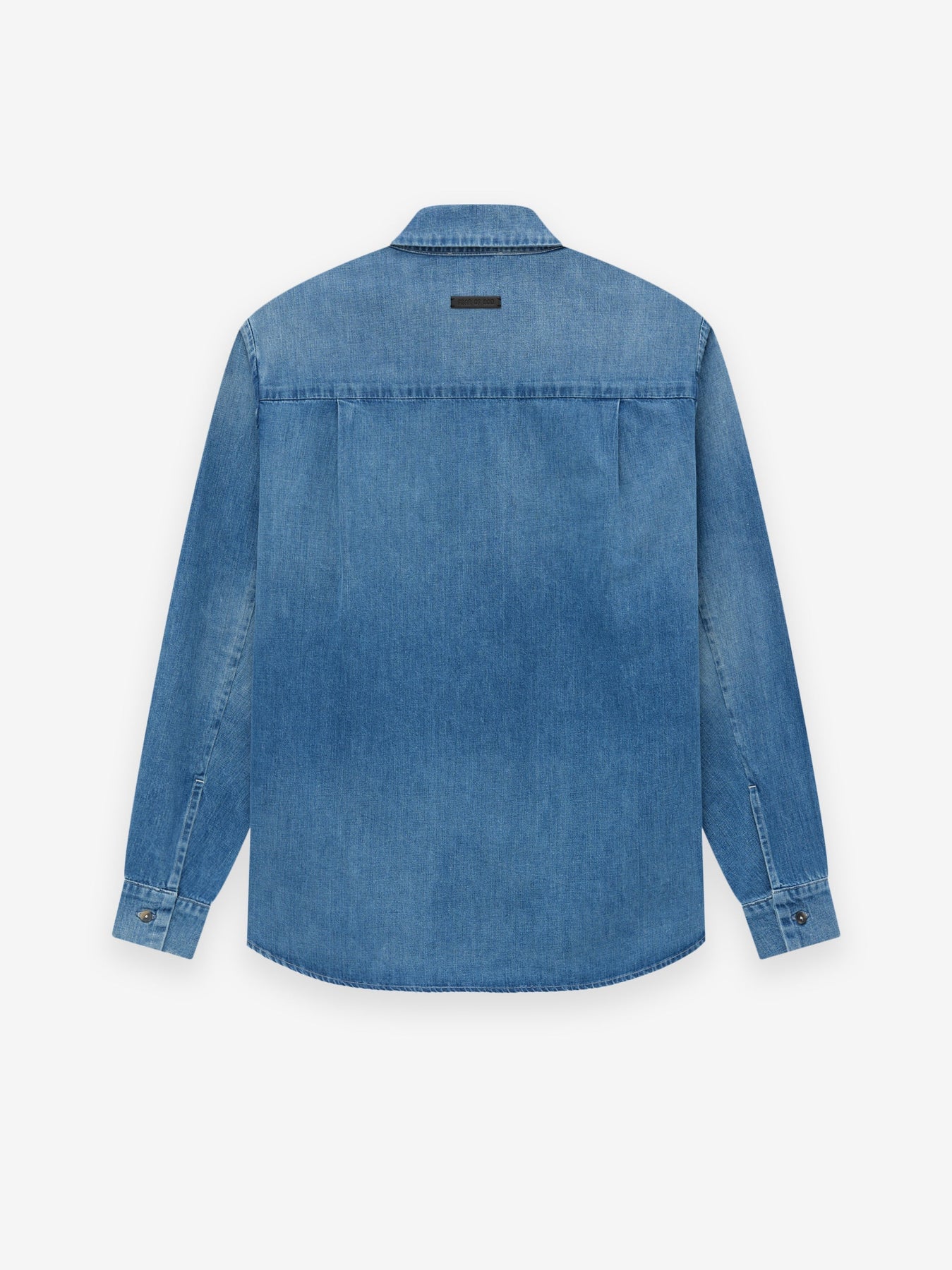 The Button Up Shirt is stitched in Italy from a medium indigo denim with a minimalist covered placket with horn buttons. A Fear of God label is stitched at the back collar.