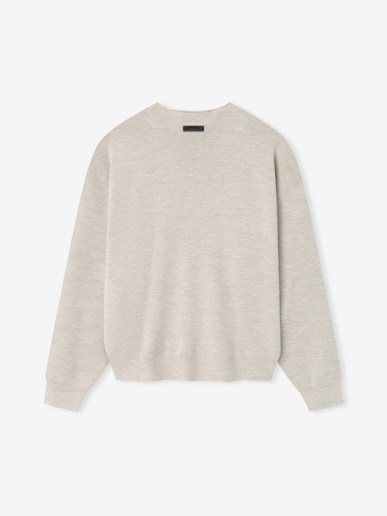 The Merino Crewneck Sweater is made from 100% merino wool. The fit is relaxed with drop shoulders, rib-knit cuffs and waist hem. Additionally, a "Fear of God Essentials" rubberized label is stitched at the back collar.