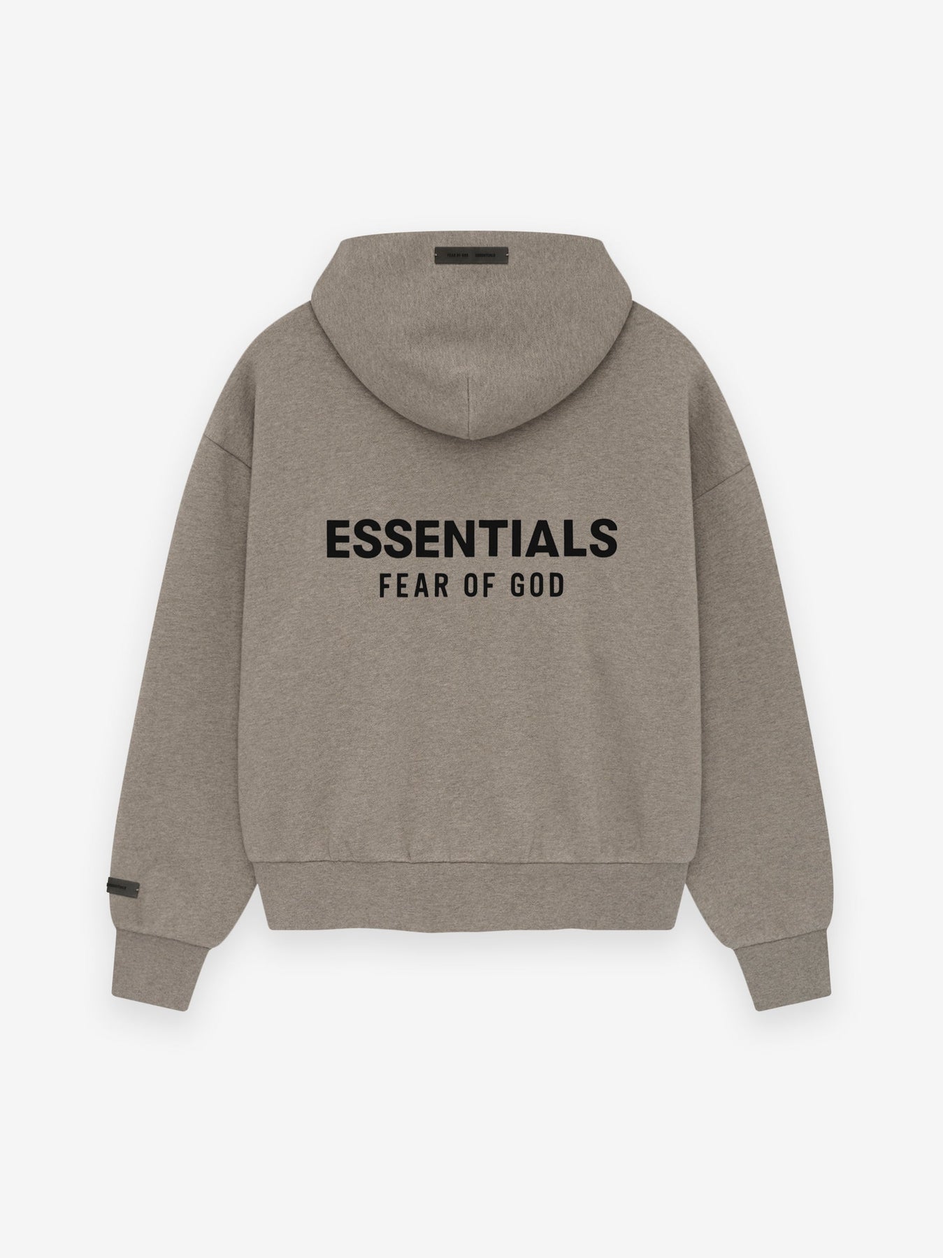 The Classic Hoodie is made from heavy 380gsm core fleece to provide ideal comfort and structure. The signature "Essentials Fear of God" soft-touch logo is branded across the back. Details include an double-layer hoodie, rib-knit cuffs, waist-hem, and a kangaroo pocket. An updated Fear of God Essentials translucent rubberized label is stitched on the hood and cuff.