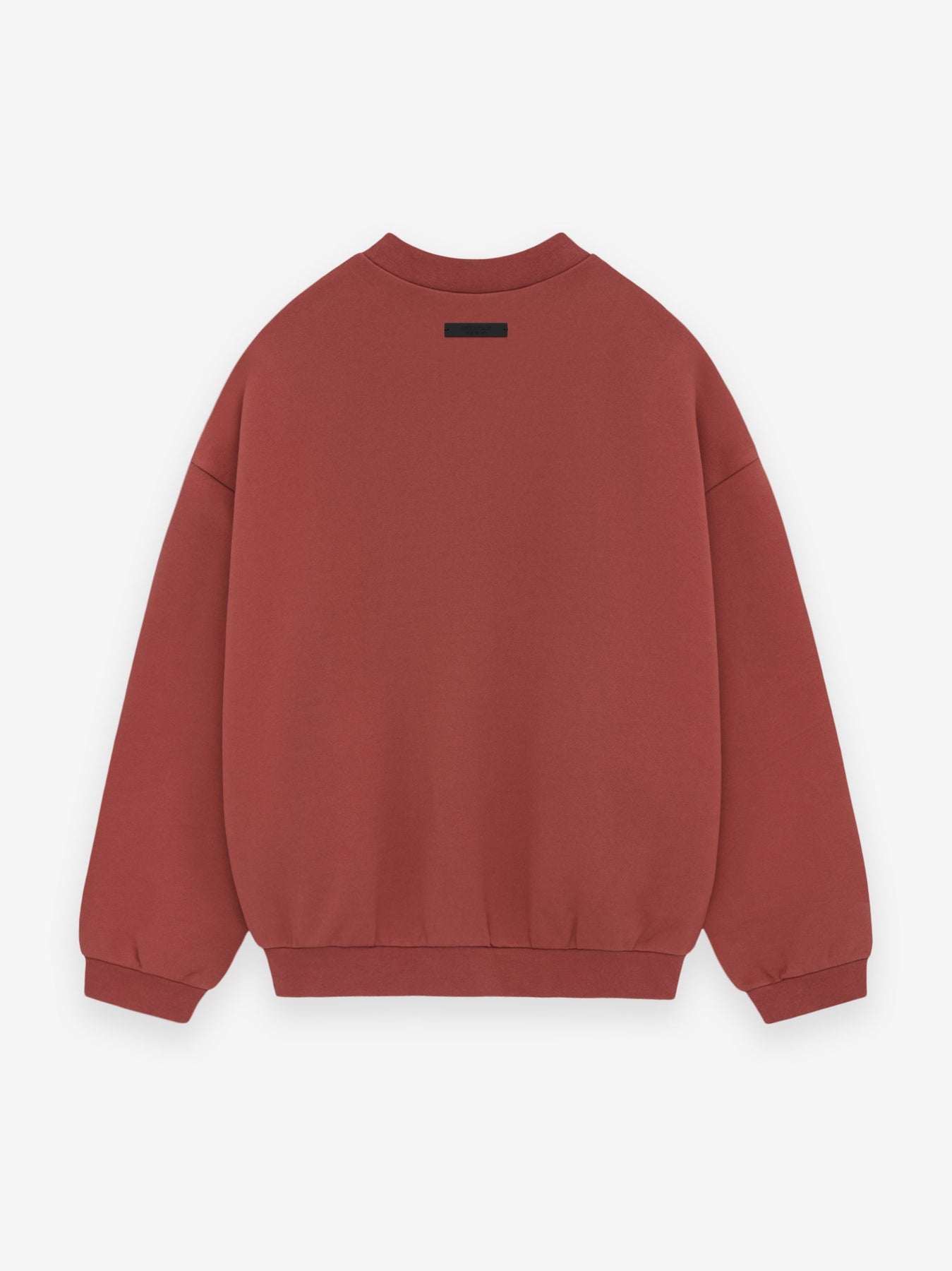 The Heavy Fleece Crewneck is made from heavyweight 520gsm, 100% cotton fleece with a subtle vintage wash. The designed volume creates a round, cropped silhouette. A collegiate-inspired "Fear of God State" satin twill varsity lettering is stitched across the front. Details include a rib-knit collar, cuffs, waist-hem, and side pockets. The Essentials Fear of God rubberized label is at the back collar.