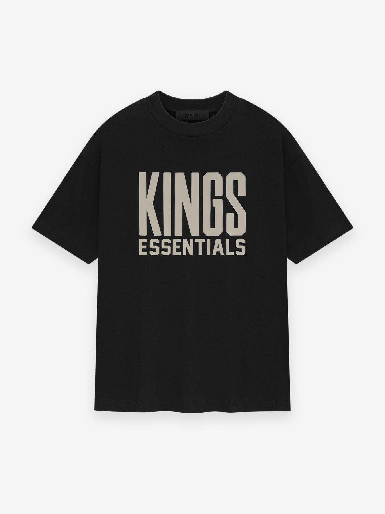 The Essentials Kings short sleeve tee is crafted from core cotton jersey. It features a relaxed fit in the body with dropped shoulders and a rib-knit crewneck. On the front, there is a rubberized soft-touch Kings Essentials lockup along with the iconic NBA logo on the back. Additionally, a rubberized Fear of God label is located at the back collar.