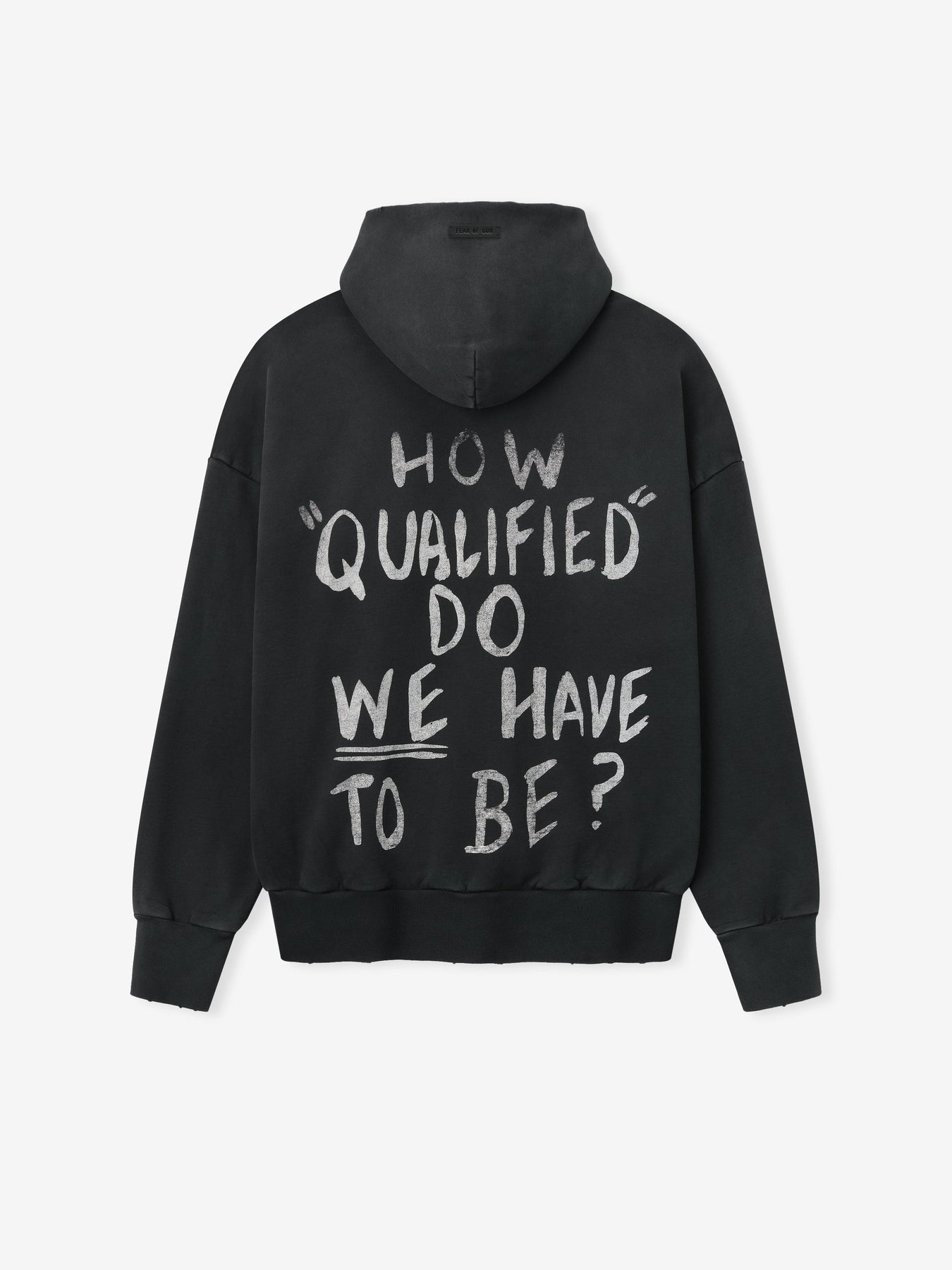 The Freedom Now Hoodie is crafted in the USA from 100% cotton fleece and is designed with a vintage fit for a shrunken, cropped style. It features hand-printed graphics inspired by the Civil Rights movement. The piece undergoes garment washing, sun fading, and hand-vintaging treatments to achieve an authentic, time-worn appearance. Additional details include rib-knit cuffs, ribbed waist hem, and a Fear of God label.