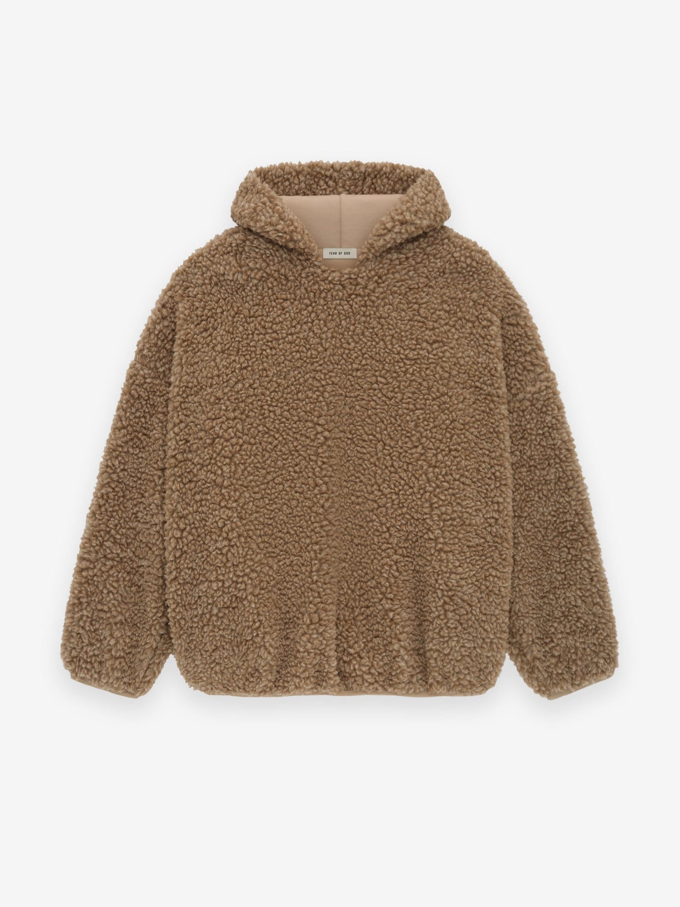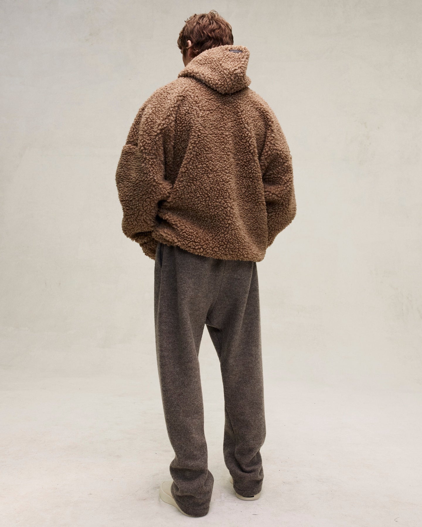 The Hoodie is made in Portugal from a wool polar fleece to contribute a compelling heavy texture. The signature Fear of God fit is evident with a relaxed silhouette, dropped shoulders that leads into the double-layered hood. Additional details include side pockets, piping at the cuff, and waist hem. A leather Fear of God label is stitched on the hood.