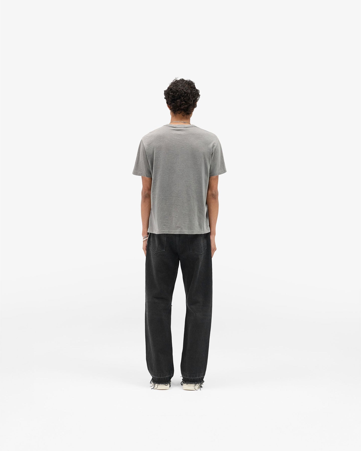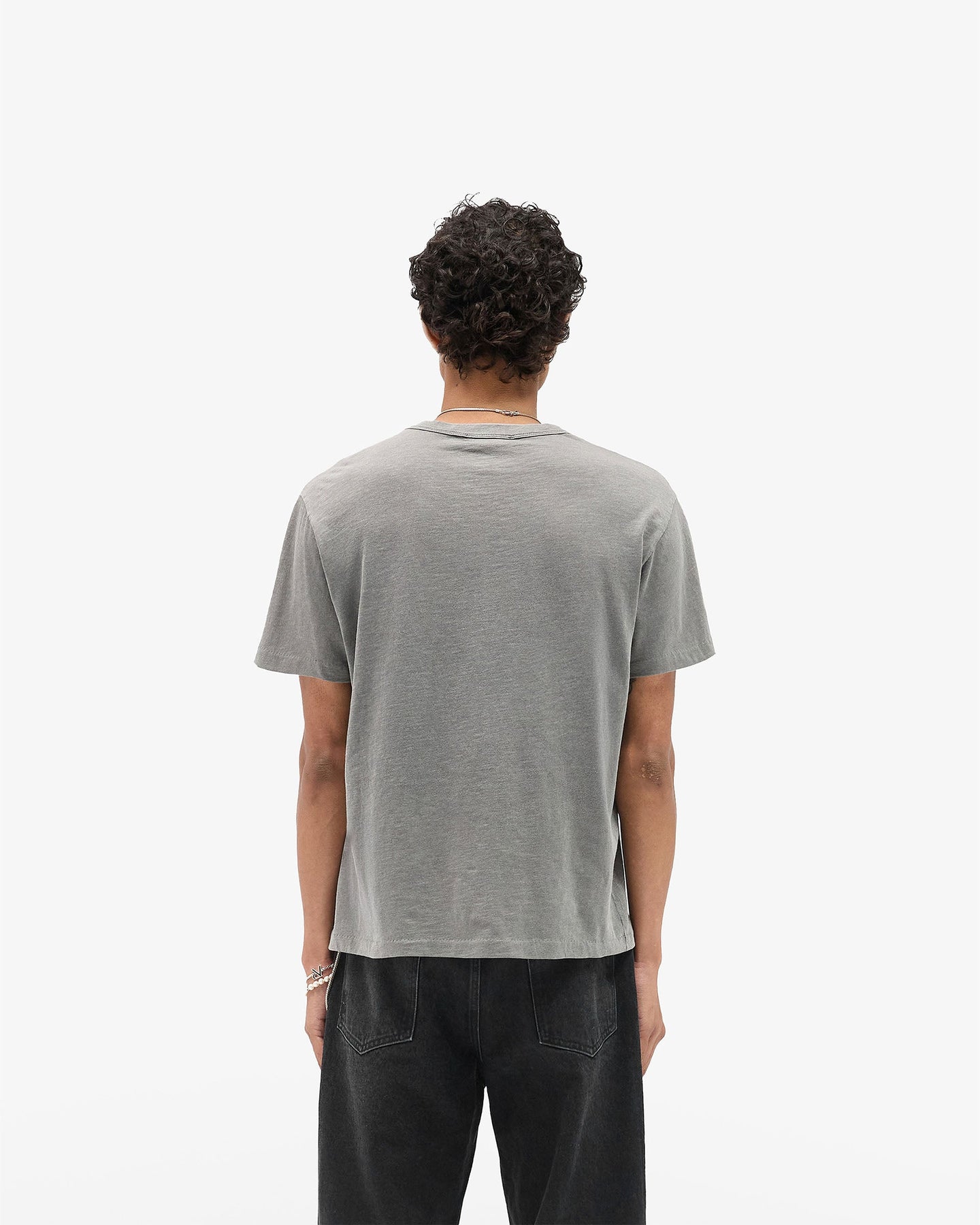 The GH T-Shirt in Vintage Grey is part of the Heaton Capsule, designed by George Heaton. Cut on a new regular-slim block, it’s made from lightweight 160GSM cotton with a laid-on rib collar and blind hem finish. The garment-dyed grey tone gives a washed, lived-in feel while retaining a sharp, minimal shape.