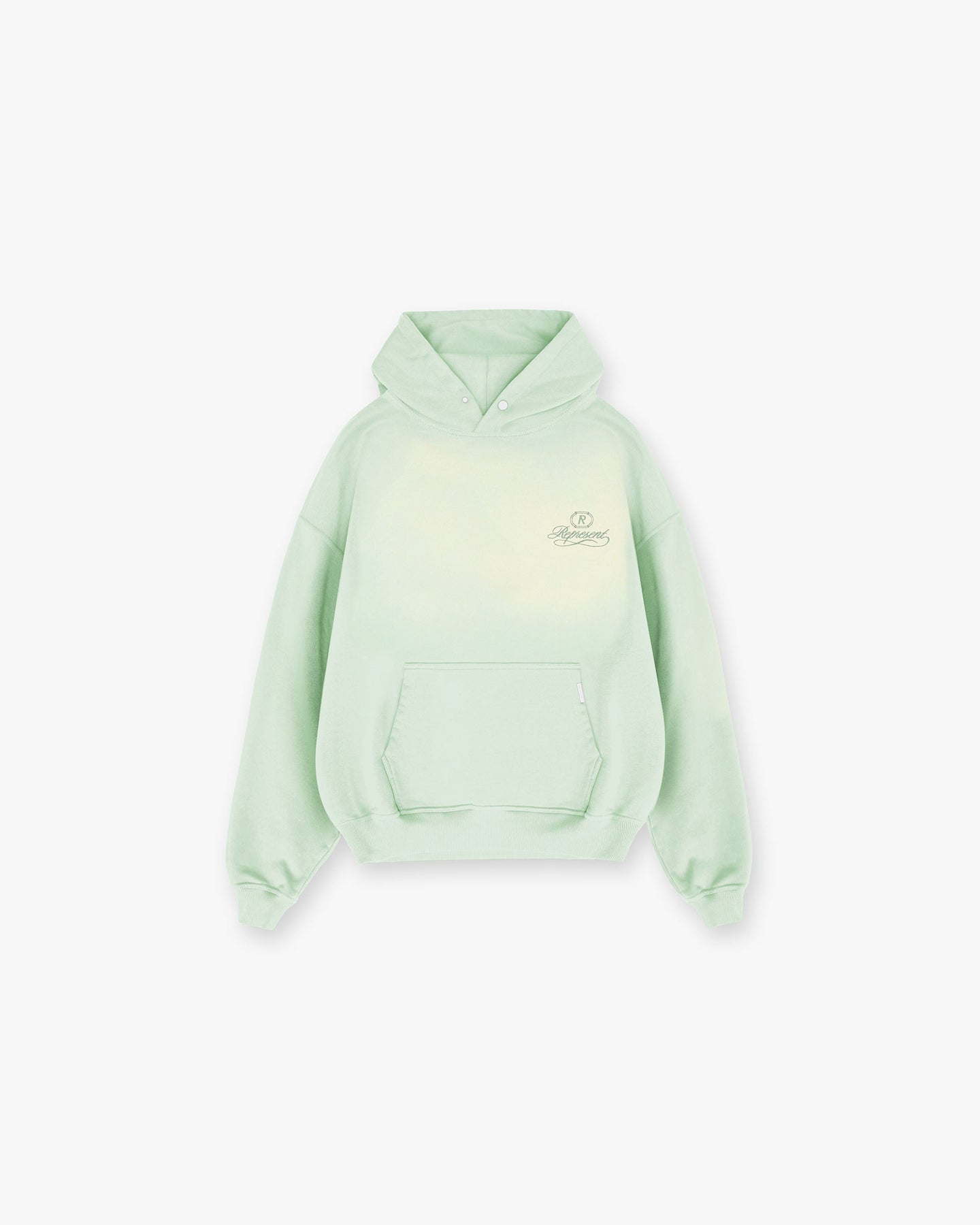 This hoodie features high build and flat embroidery to the chest and back, showcasing the Grand Cru crest and Represent script in tonal thread. With a relaxed fit, popper fastening at the hood, and a garment-dyed, spray-finished surface, it blends vintage inspiration with modern refinement.