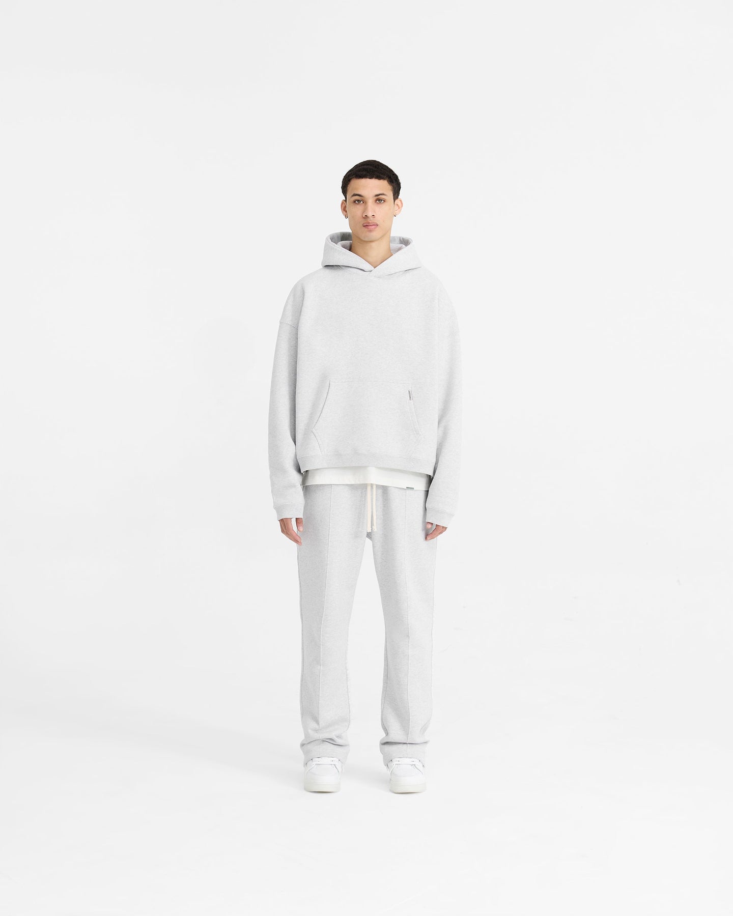 The Initial Boxy Hoodie in ice grey marl is crafted from a heavyweight (500gsm) brushed back fleece cotton. It is a new fit style for the brand, with an oversized & boxy fit, falling wide and square with a super cropped body length. The hoodie has dropped shoulders and wide sleeves with a 1x1 rib to the cuffs and hem. The hoodie is finished with the Represent metal bar to the pocket and embroidered Initial to the hood.