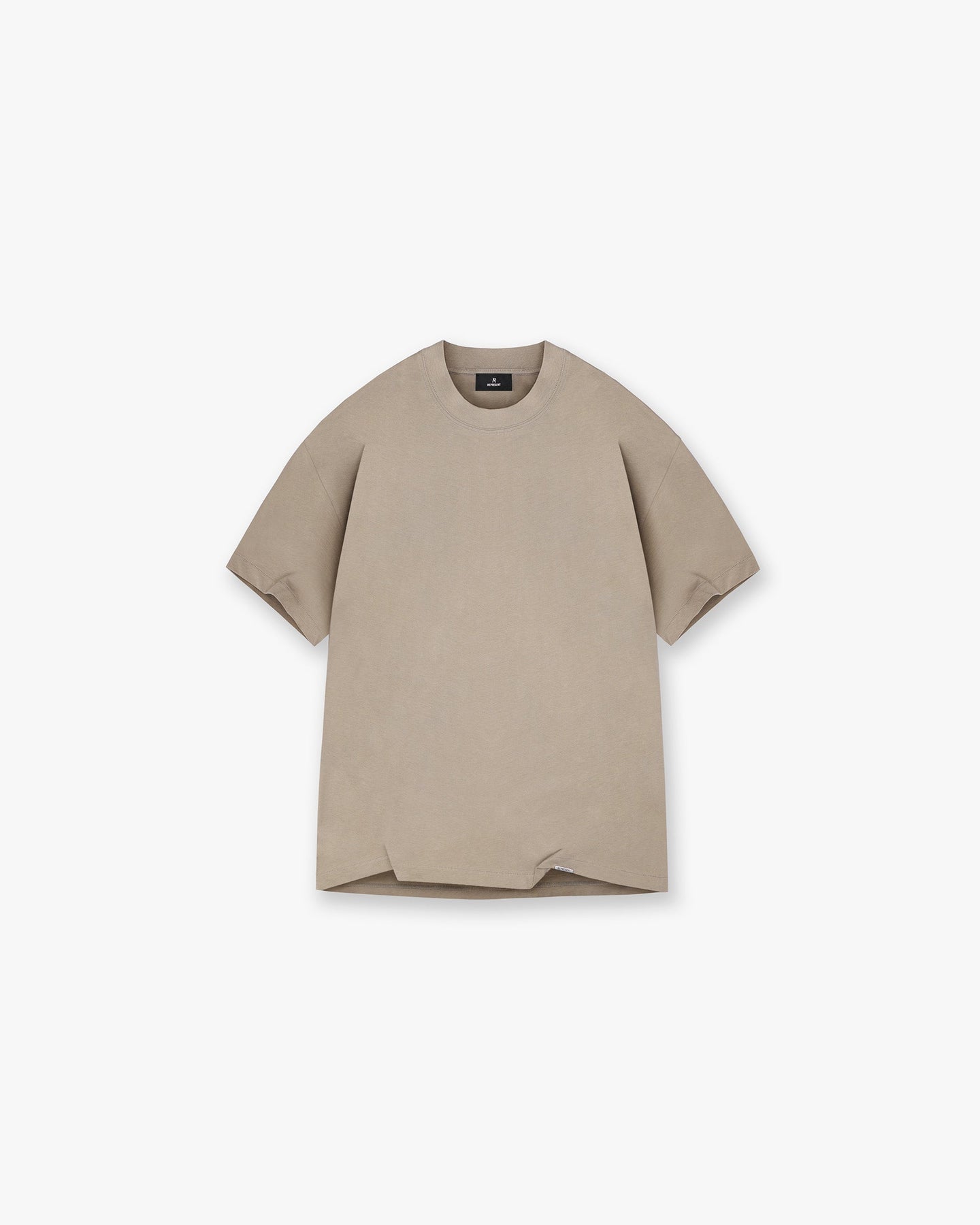 The Initial T-Shirt in Dune is the closest fitting tee from Represent, with a regular fit to the chest and hem, slimmer and shorter sleeves than our mainline and crafted from 180gsm jersey cotton. It has a 1x1 small rib to the collar, and is finished with an embroidered Initial to the back neck and Represent metal bar logo to the hem.