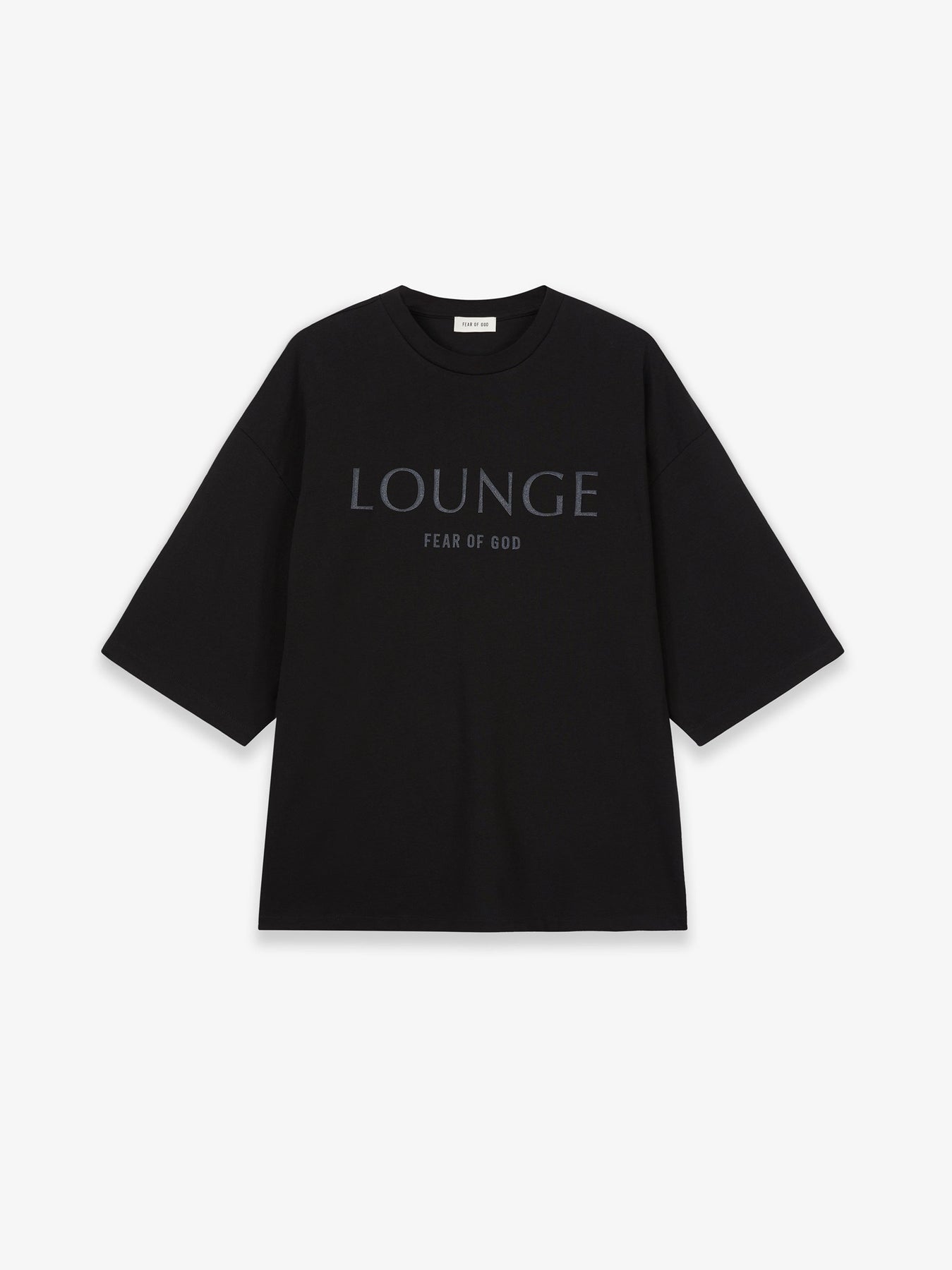 The Printed Jersey Tee is made from a 100% cotton jersey for lounge comfort. A stacked "LOUNGE FEAR OF GOD" logo is on the front, while a Fear of God label is stitched at the back collar.