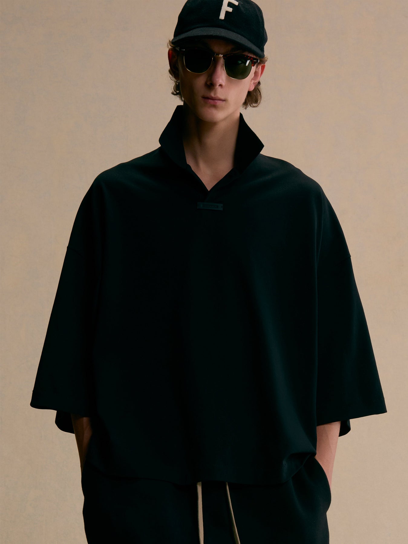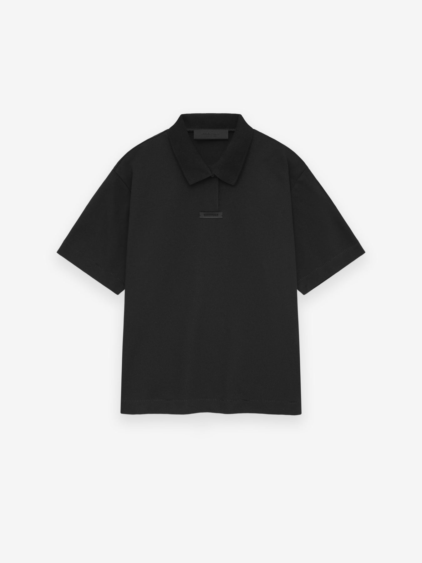 The Pique Polo is made of a cotton/poly pique knit, providing a textured feel with a soft touch. It features a rib-knit polo collar, and a button placket. Minimalist branding includes the Essentials Fear of God black bar at the center front and the Essentials Fear of God rubberized label at the back collar.