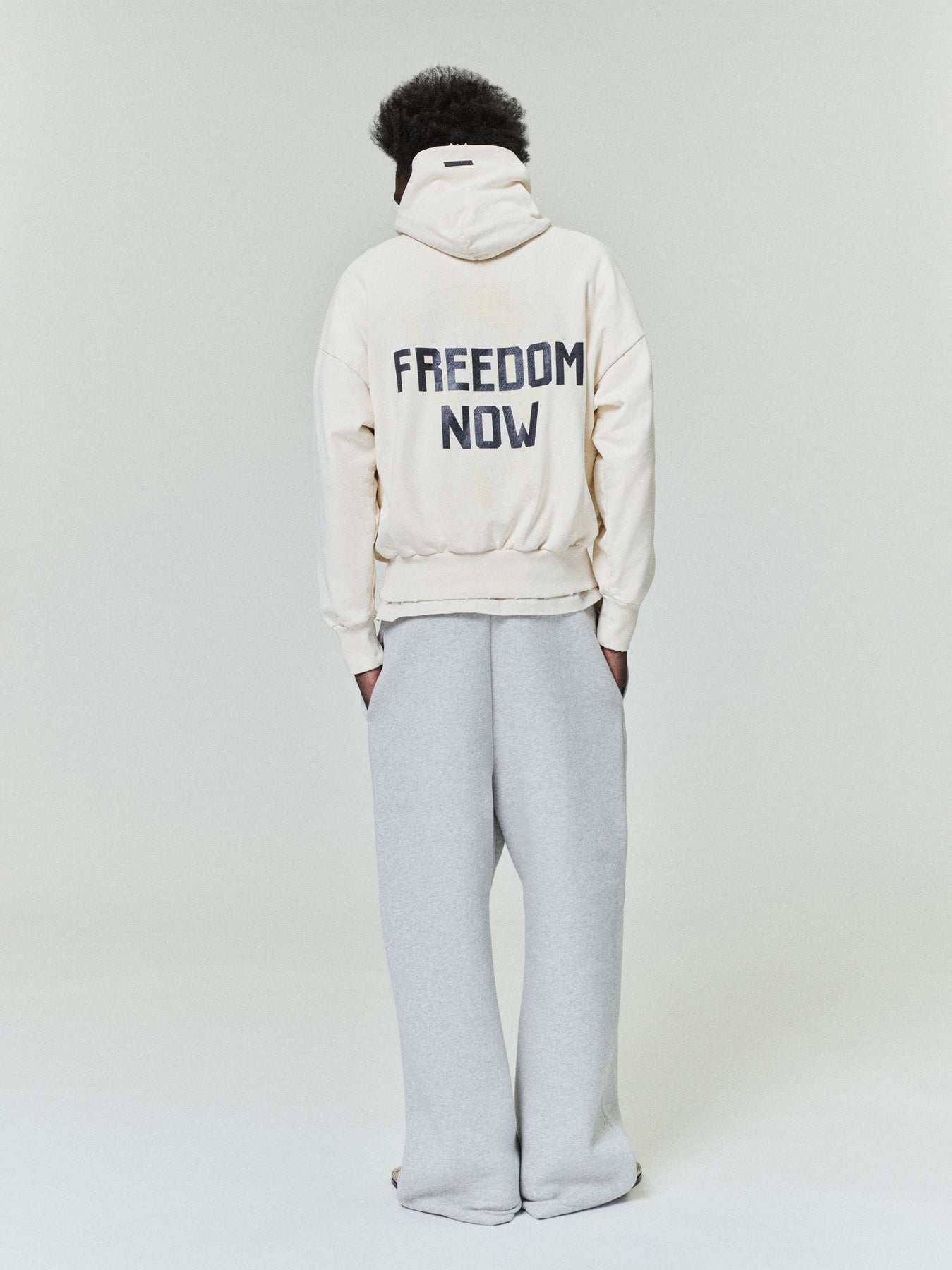 The Revolution Hoodie is crafted in the USA from 100% heavyweight cotton fleece and features a sunfade wash with hand-distressing for an authentic vintage appearance. The hand-printed graphics are inspired by the civil rights movement. This double-layer hoodie features a relaxed fit with drop shoulders, rib-knit cuffs and waist hem. A Fear of God label is stitched on the hood.
