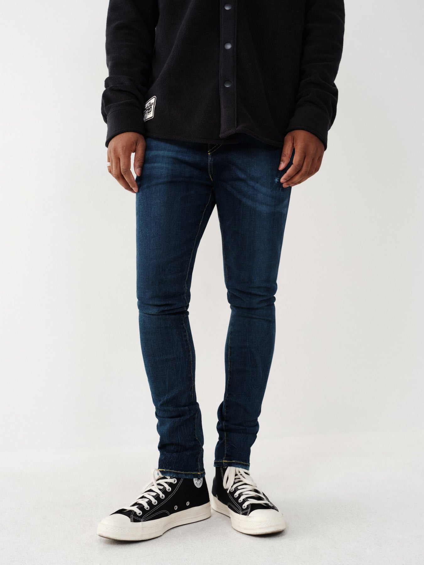 Elevate your denim game with the True Religion Jack Jeans in Breezer Dark Wash. Crafted for the modern individual, these jeans feature an impeccable fit and striking inseam rivets that add a touch of rugged elegance. The rich dark wash effortlessly transitions from day to night, making them your go-to choice for any occasion. Experience unparalleled comfort and style—because true fashion is about feeling as good as you look. Embrace the trendsetter in you!