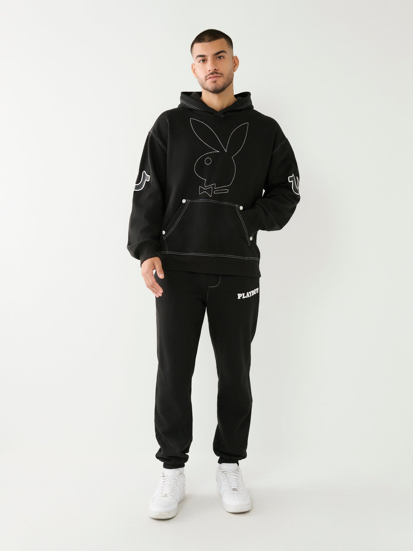 True Religion Relaxed Hoodie X Playboy Bunny Jet Black
