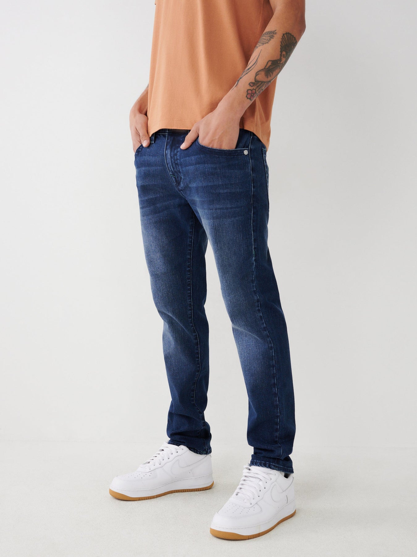 Elevate your denim game with the True Religion Rocco Jeans in Dark High Road Wash. Crafted for style and comfort, these jeans feature a modern slim fit that flatters every body type. The deep indigo hue and signature stitching add a touch of sophistication, making them perfect for both casual outings and nights out. With durable fabric and a tailored design, these jeans promise to be your go-to pair for any occasion. Experience luxury and confidence with every wear!