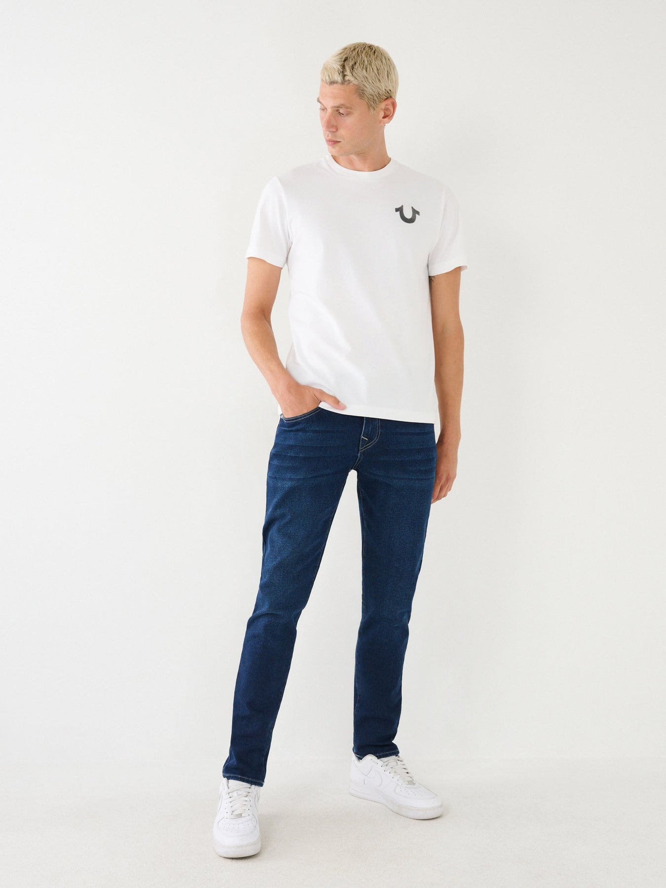 Elevate your denim game with the True Religion Rocco Jeans in Dark Artic. These skinny-fit jeans offer a sleek silhouette that flatters every curve while providing maximum comfort. Crafted from premium stretch denim, they feature signature stitching and a contemporary wash that exudes effortless style. Perfect for any occasion, pair them with your favorite top and step out in confidence. Redefine casual chic with these must-have jeans!