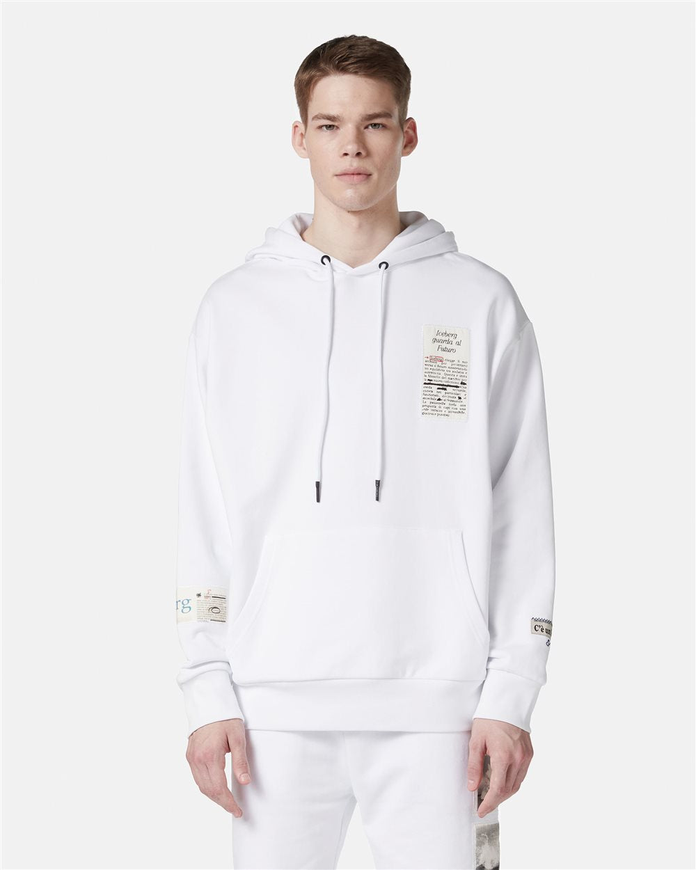 Iceberg Relaxed Fit Cotton Hoodie With Newspaper Print