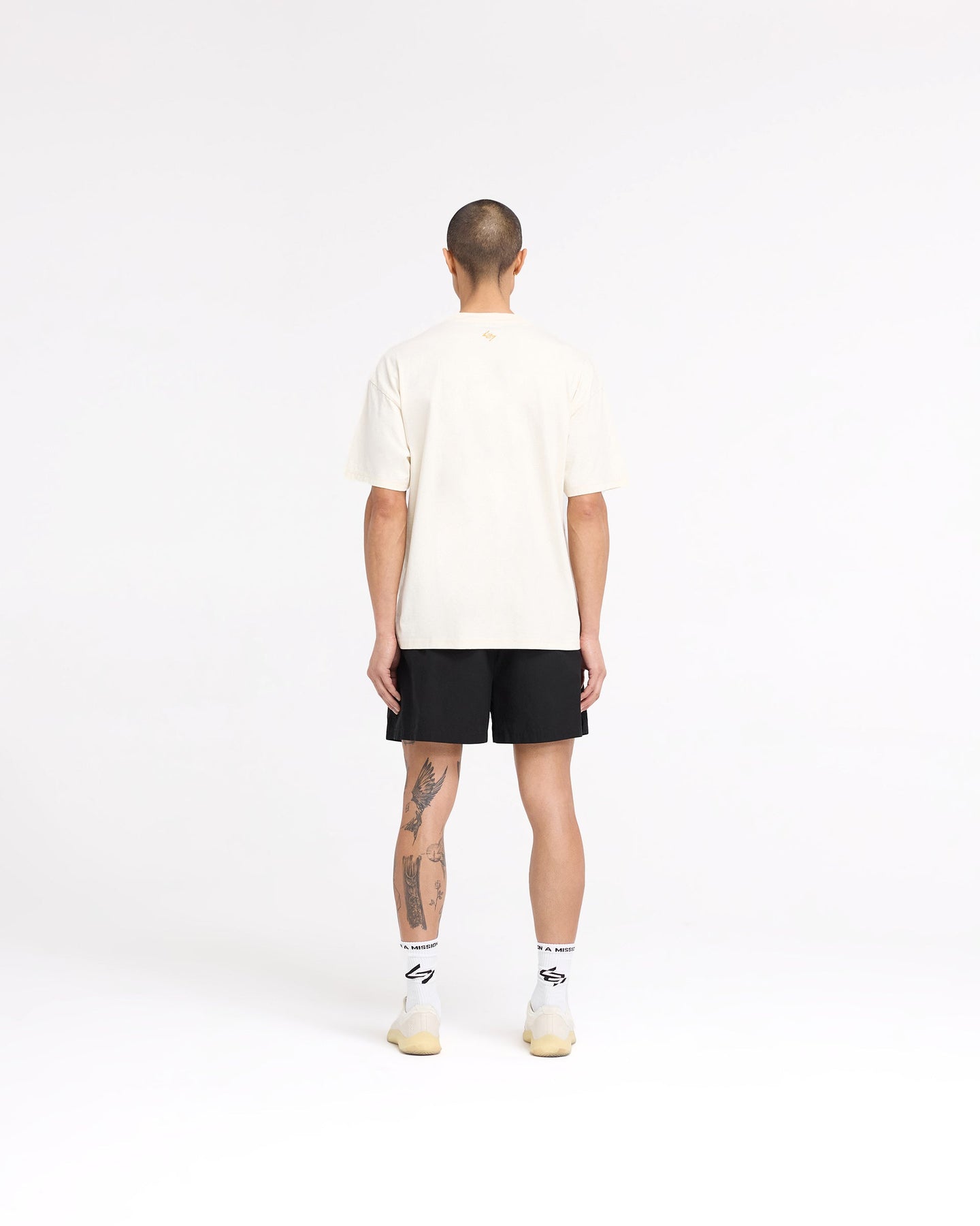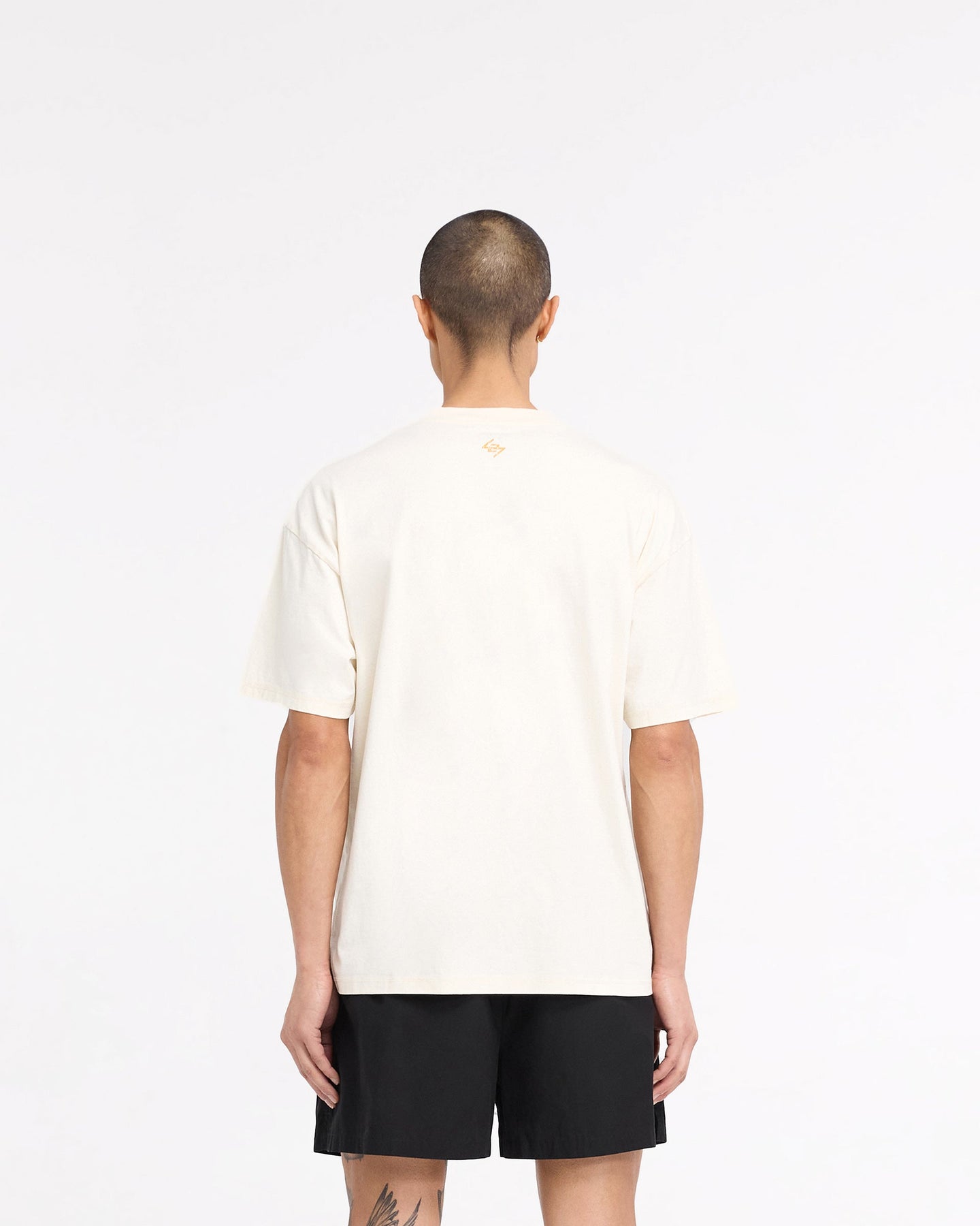 Introducing the 247 On His Shoulders T-Shirt in Antique White, crafted from a super soft hand feel jersey cotton, following our oversized mainline fit. The t-shirt has a ribbed collar, with a cracked ink 247 On His Shoulders graphic to the front and 247 logo to the back neck.
