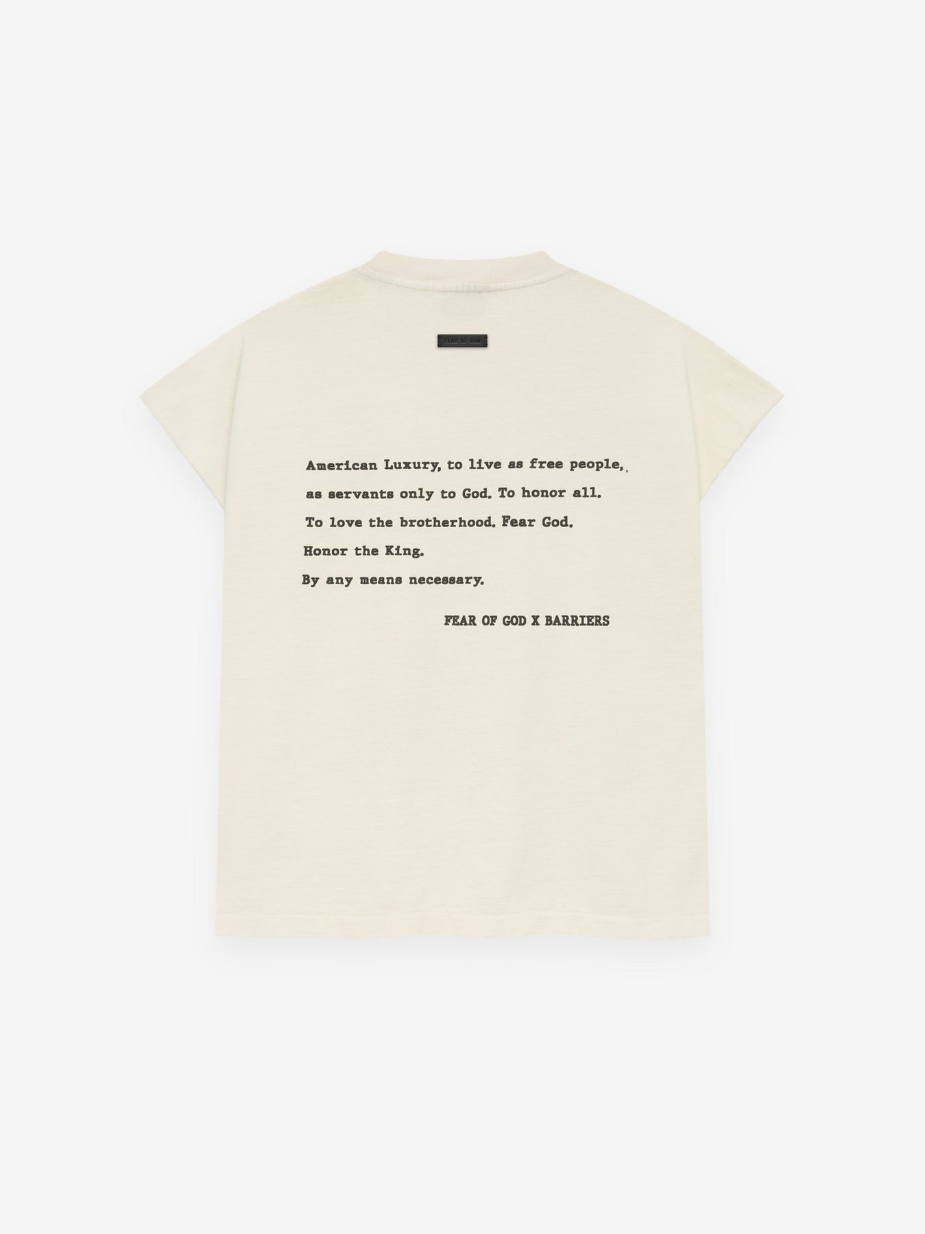 In honor of Malcolm X's 100th birthday, Fear of God has partnered with Barriers to create a limited-edition capsule collection. The muscle tee is made in the USA from 100% cotton jersey with hand-printed graphics to add visual impact to the front and back of the piece. This piece is designed with a relaxed fit with drop shoulders. A Fear of God label is stitched at the back collar.
