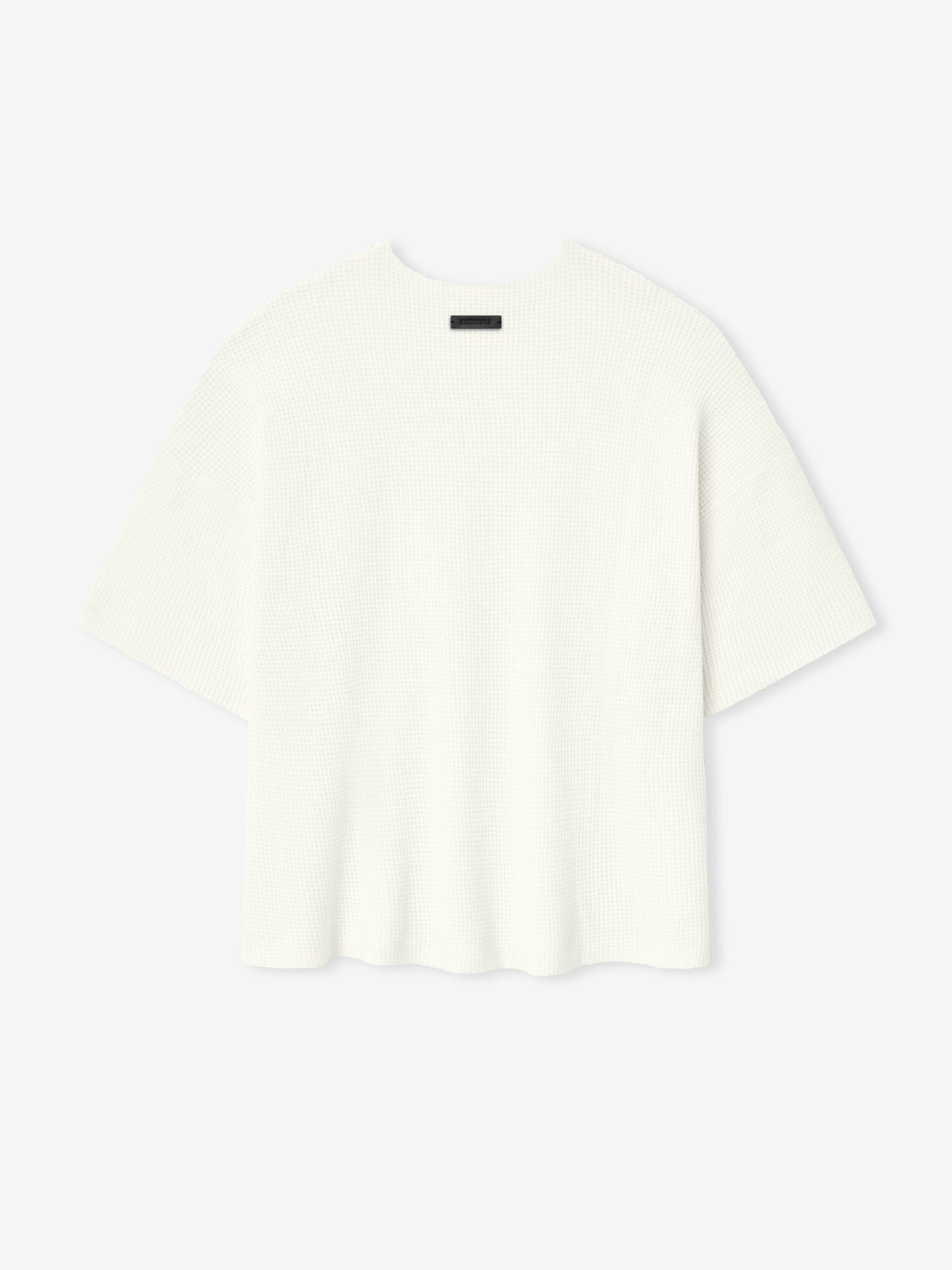 The Waffle Short Sleeve Sweater is made from heavyweight poly-nylon knit for warmth with stretch comfort. The fit is relaxed with drop shoulders. A "Fear of God Essentials" rubberized label is stitched at the back collar.