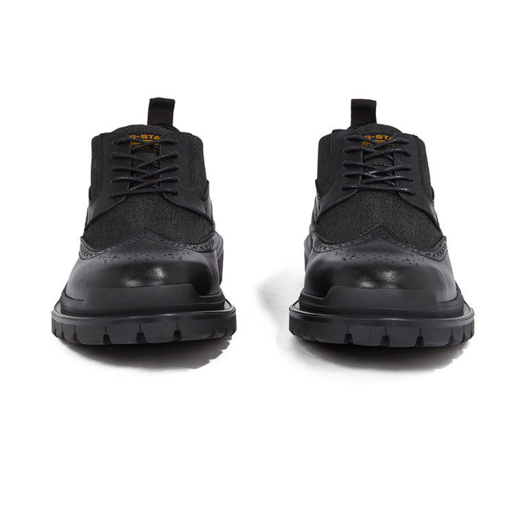 Shoe Blake BRQ combines a formal brogue style with different materials. The authentic decorated toe offers a contrast to the modern mud guard applied.