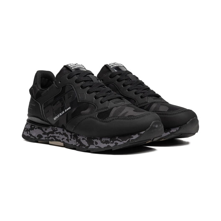 Arthur Rep 2 lace-up sneakers in PU and nylon, featuring camouflage inserts. They are decorated with the lettering logo in different versions on the side, tongue and heel pull-tab. Chunky EVA and rubber sole.