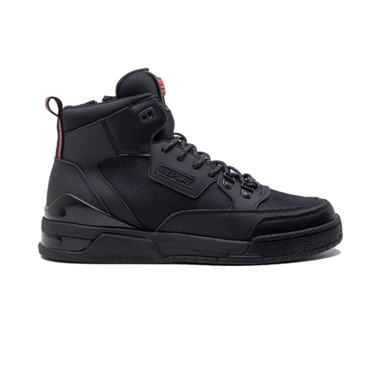 Astro Speed S lace-up mid-top sneakers featuring a PU upper with rubberised details and a two-tone sole. This style features a padded collar and a convenient branded tape pull-tab and a shiny-effect insert on the heel. The engraved Replay lettering on the side and tongue complement the design.