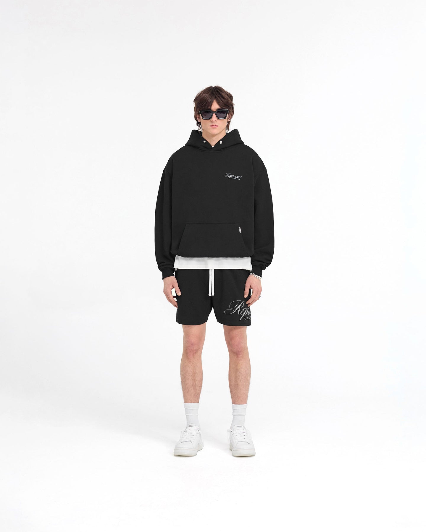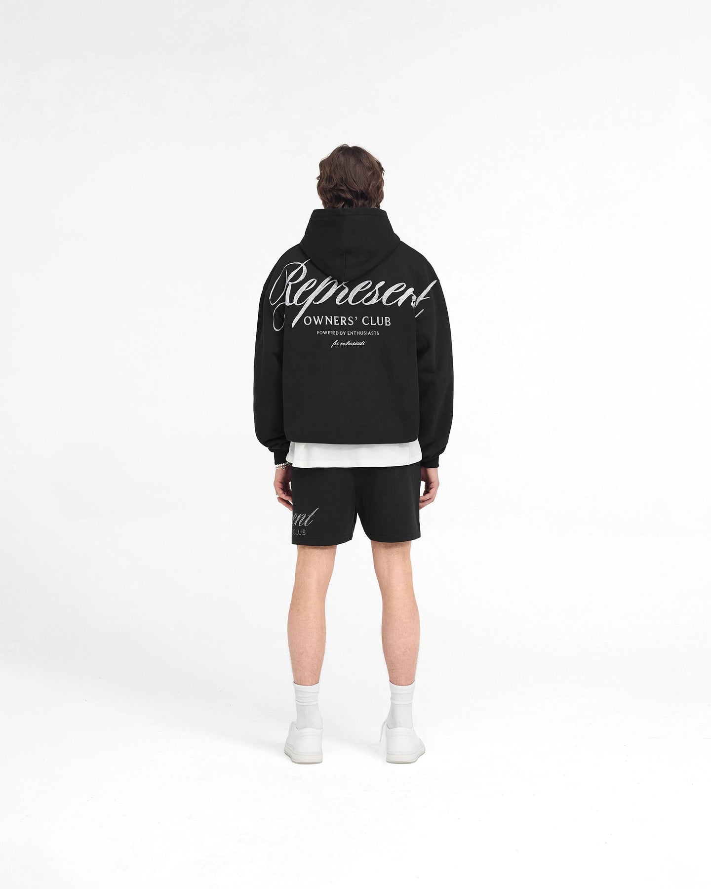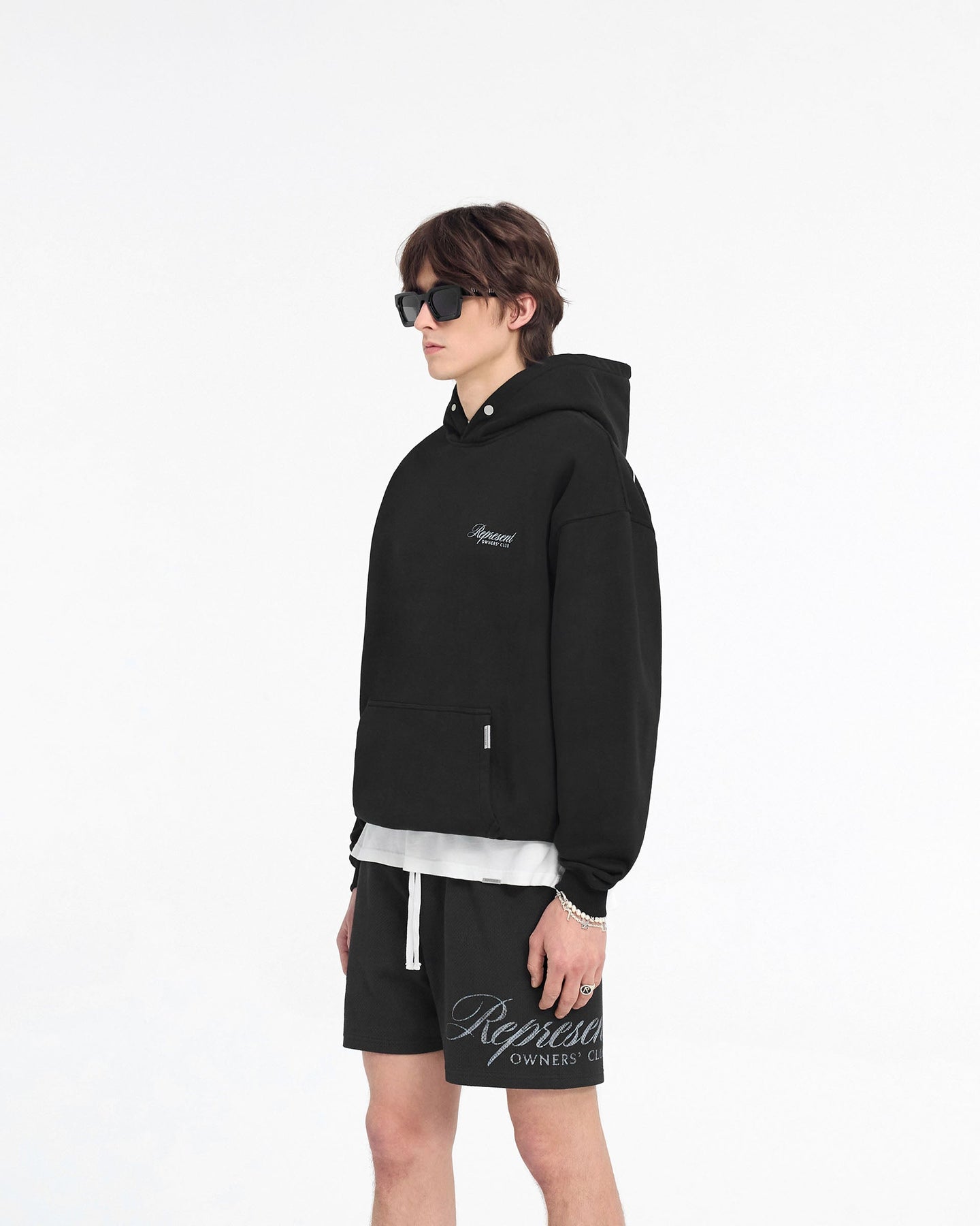 Introducing the latest evolution of the Represent Owners’ Club Hoodie in Black, crafted from heavy weight jersey cotton with a slightly oversized fit. The hoodie features a ribbed hem and cuffs, with a Cobrax popper to the hood and Represent metal bar to the pocket.