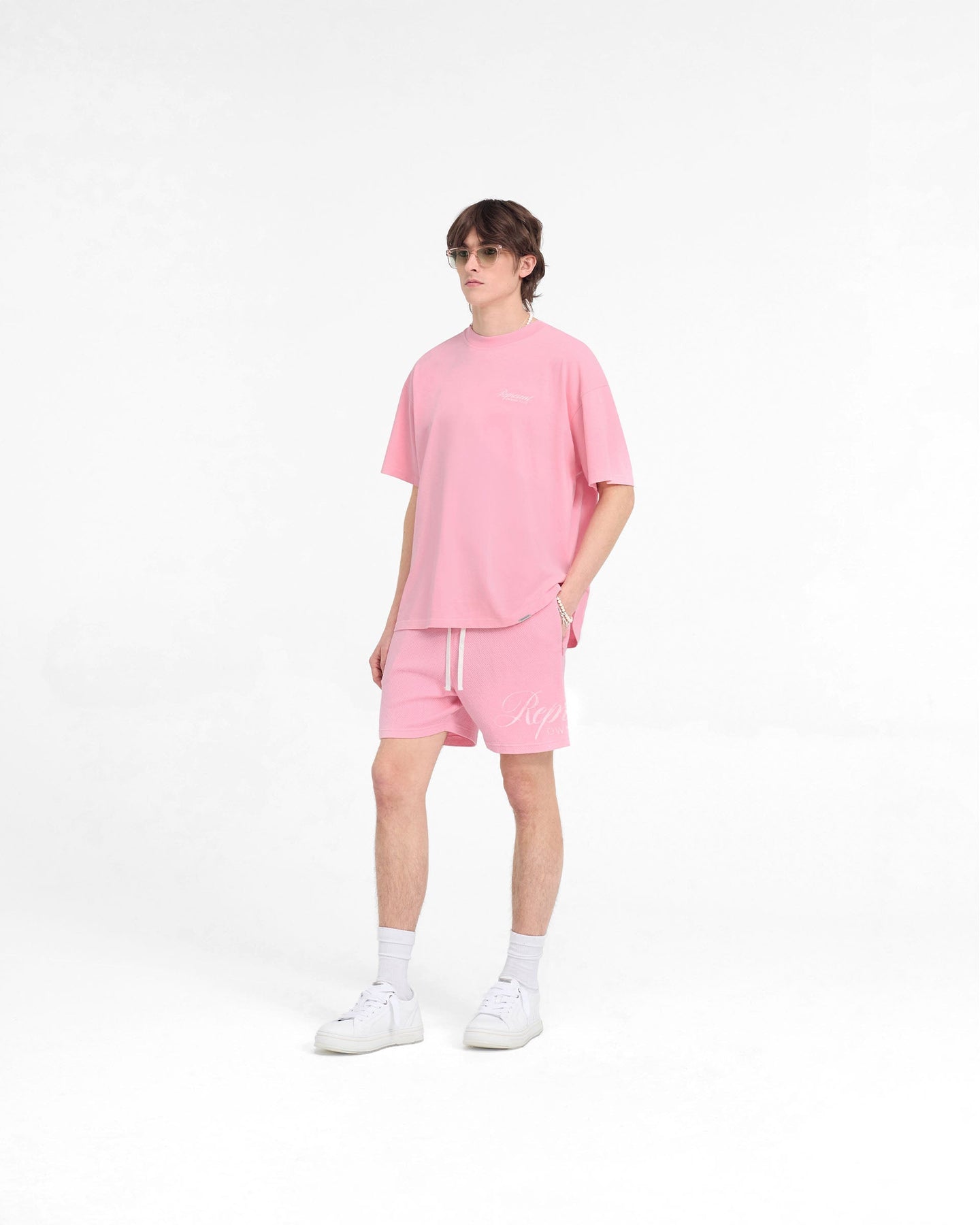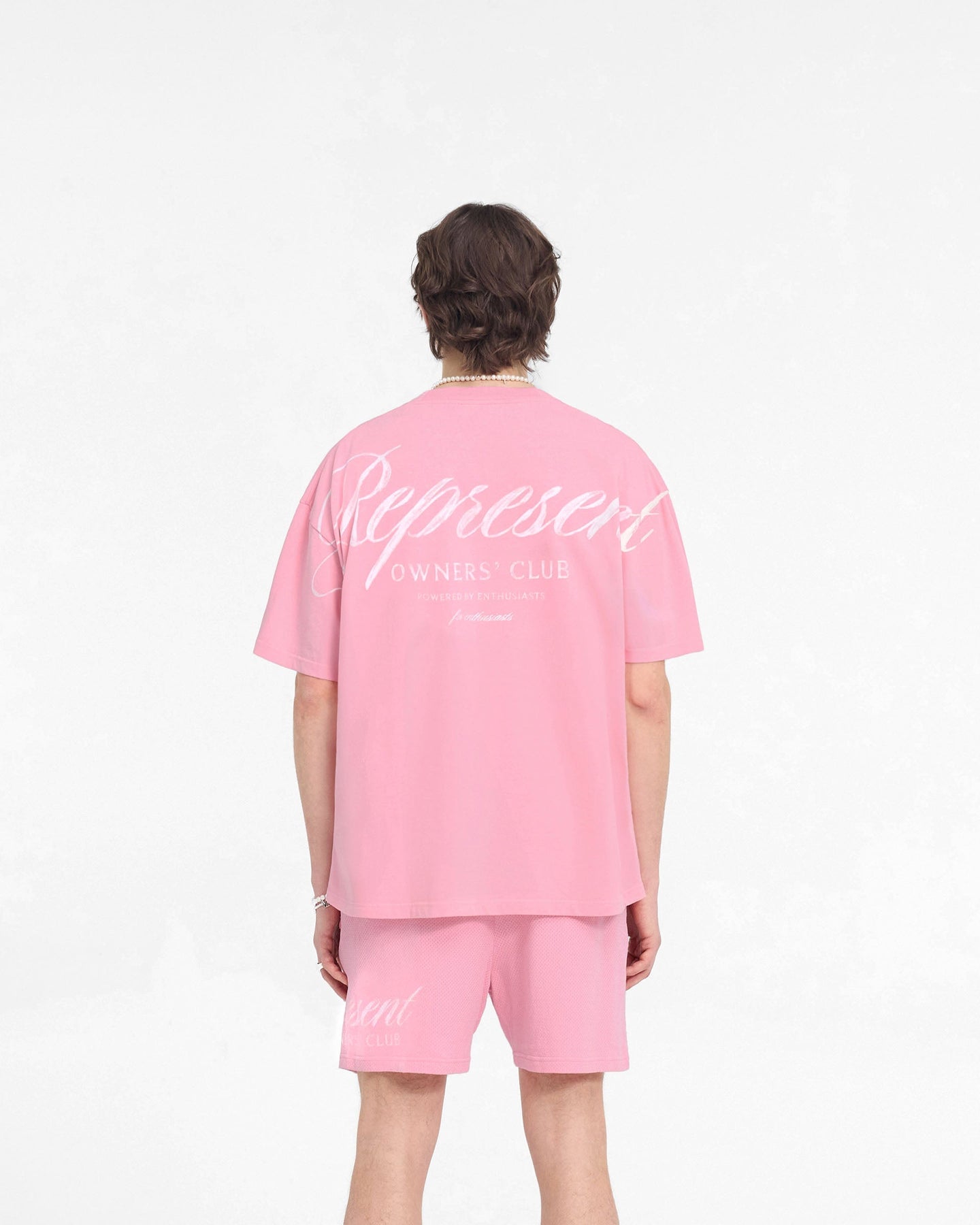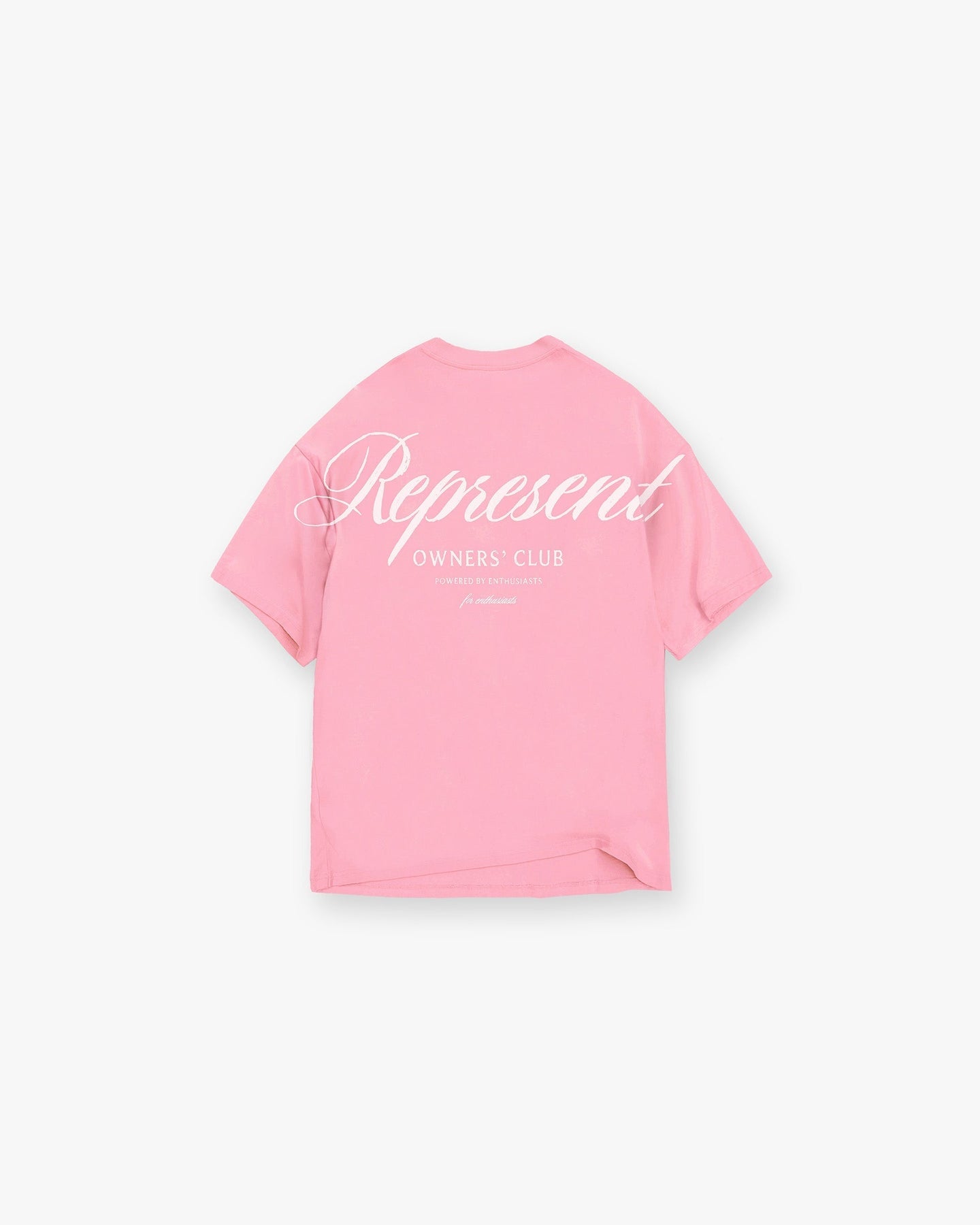 Introducing the latest evolution of the Represent Owners’ Club T-Shirt in Pink, an oversized t-shirt crafted from luxury medium weight cotton. This t-shirt has a ribbed crewneck collar and a Represent metal bar to the hem.