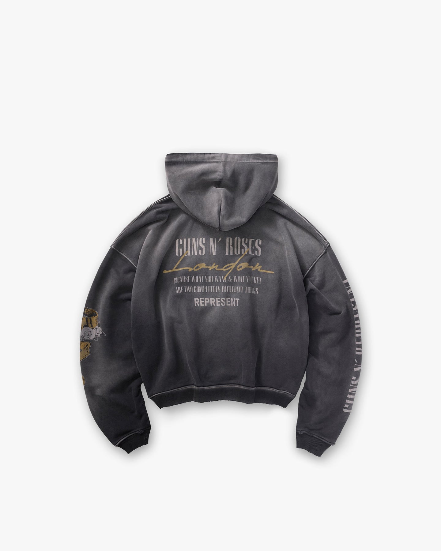 Represent X Guns N' Roses Cross Zip Through Hoodie - Stained Black
