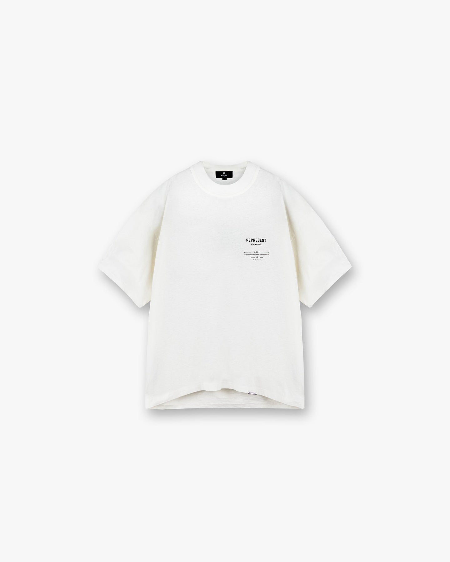 Introducing the Revere Manor T-Shirt in Aged White, a heavyweight jersey tee crafted from a slub cotton-hemp blend for a worn-in, vintage hand feel. Featuring a ribbed collar, chest print, and large distressed Revere Manor artwork to the back. Finished with a metal bar detail at the hem and subtle distressing throughout, this piece is cut to an oversized fit and designed to evolve with wear.