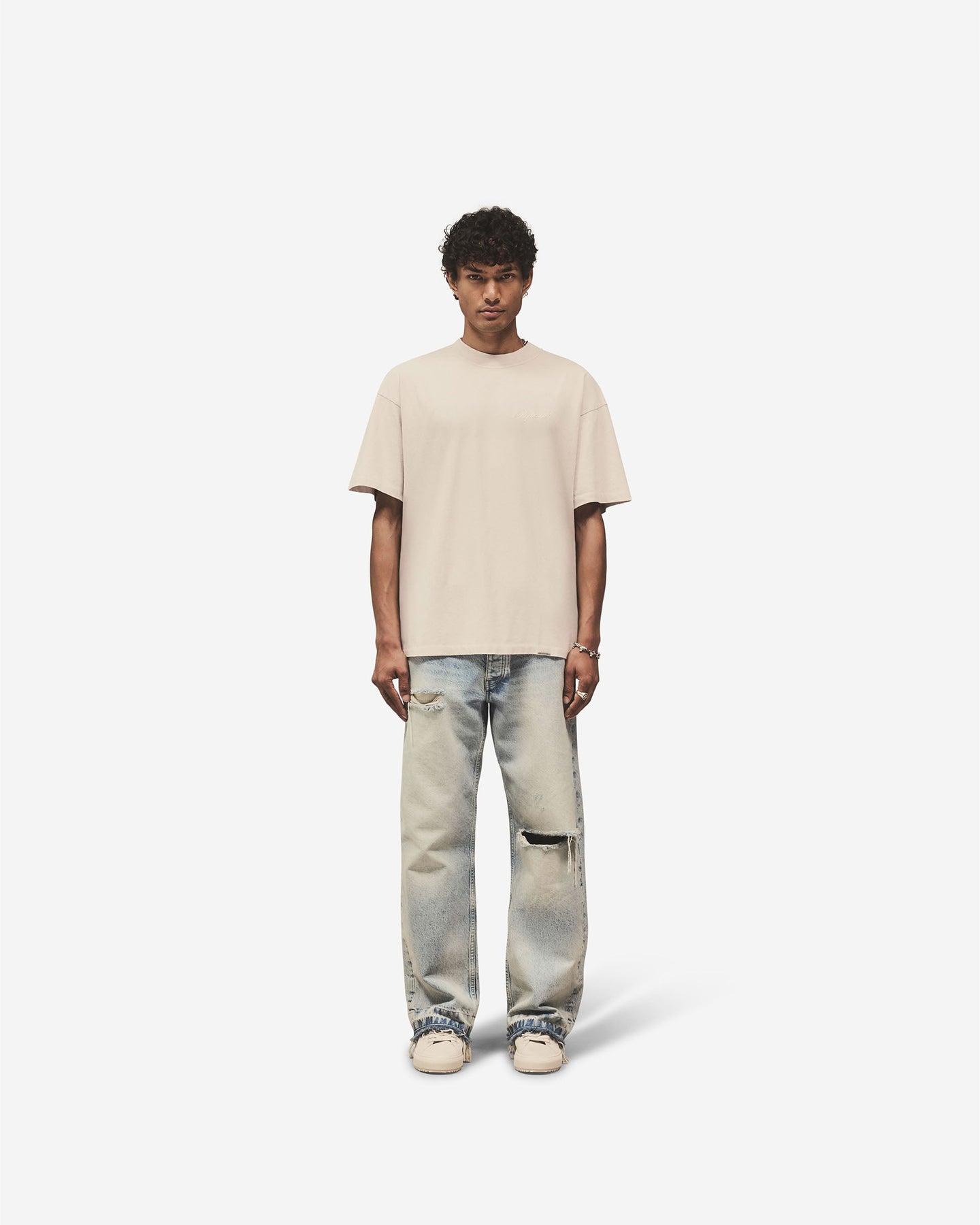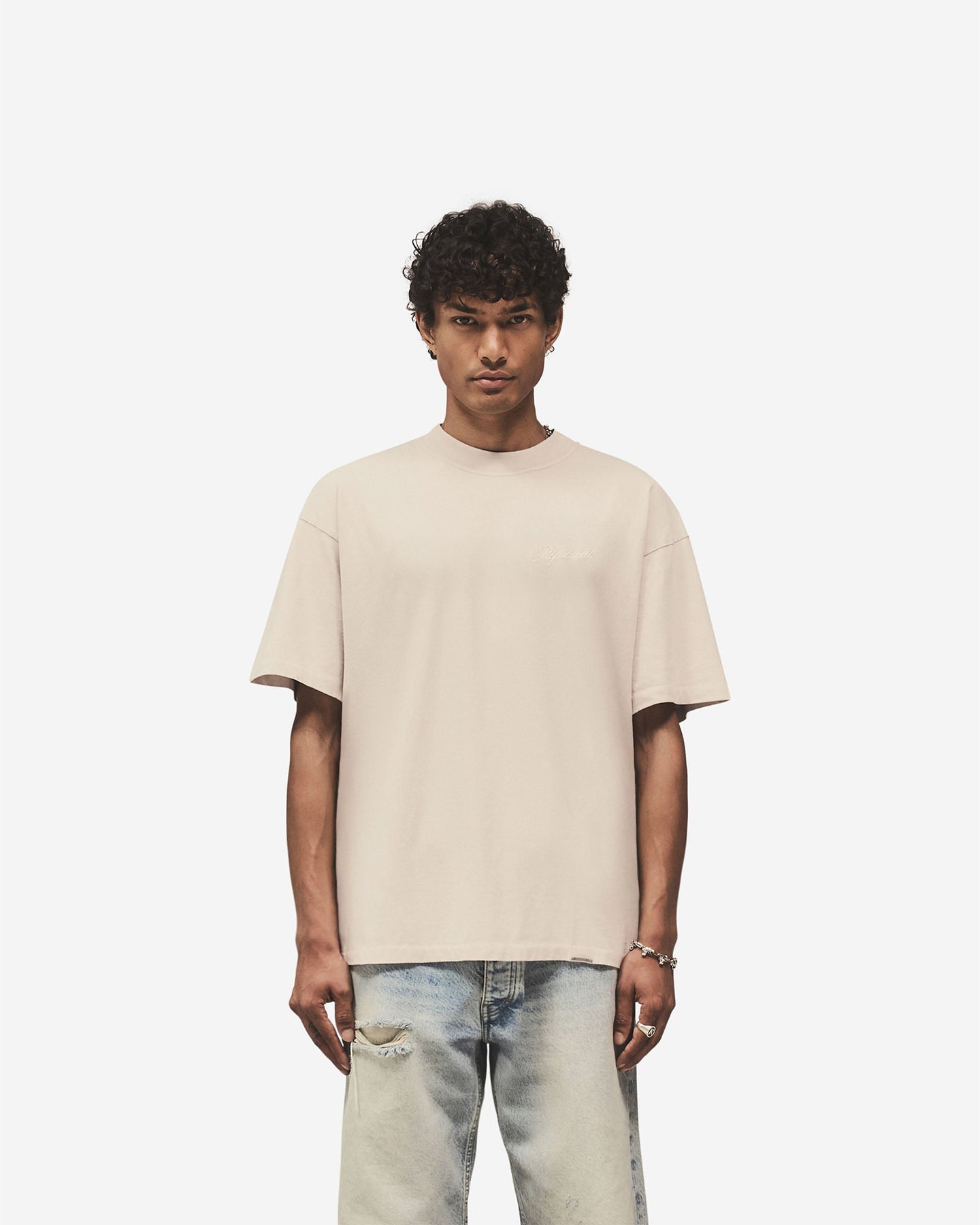 Introducing the Script Logo T-Shirt in Concrete, a slightly oversized t-shirt crafted from soft jersey cotton with a carbon finish for a smooth, premium feel. Featuring high-build embroidered script branding at the chest, the piece is finished with a clean blind hem and the signature Represent metal bar at the hem.
