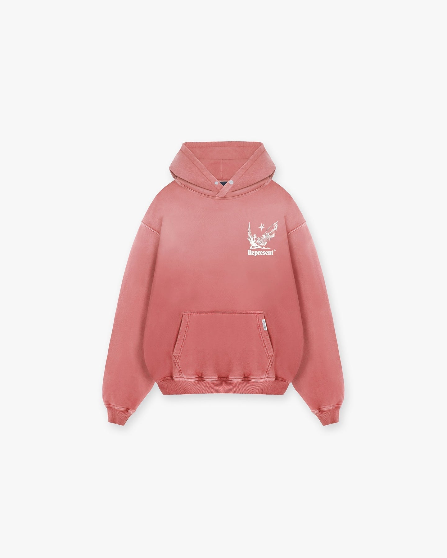 Introducing the Spirits of Summer Hoodie in Sunrise, a luxury cotton hoodie with a slightly oversized fit. This hoodie has a ribbed hem and cuffs, with a Cobrax popper to the hood and Represent metal bar to the pocket. It has been crafted with a pigment dye and spray technique, creating a gradient wash, making each piece truly unique. The hoodie is finished with our puff print Spirits of Summer graphic to the front and back.