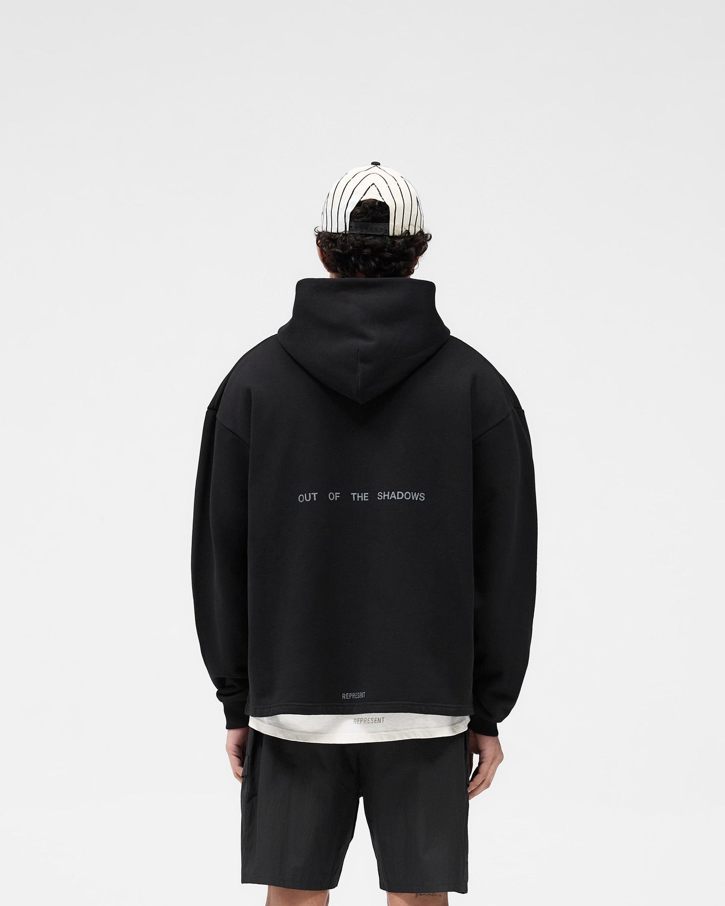 Introducing the Team Rep Hoodie in Black, an oversized fit hoodie, crafted from heavy weight jersey cotton. The hoodie showcases a vintage worn graphic, finished with a Represent metal bar to the hem and side split hem.