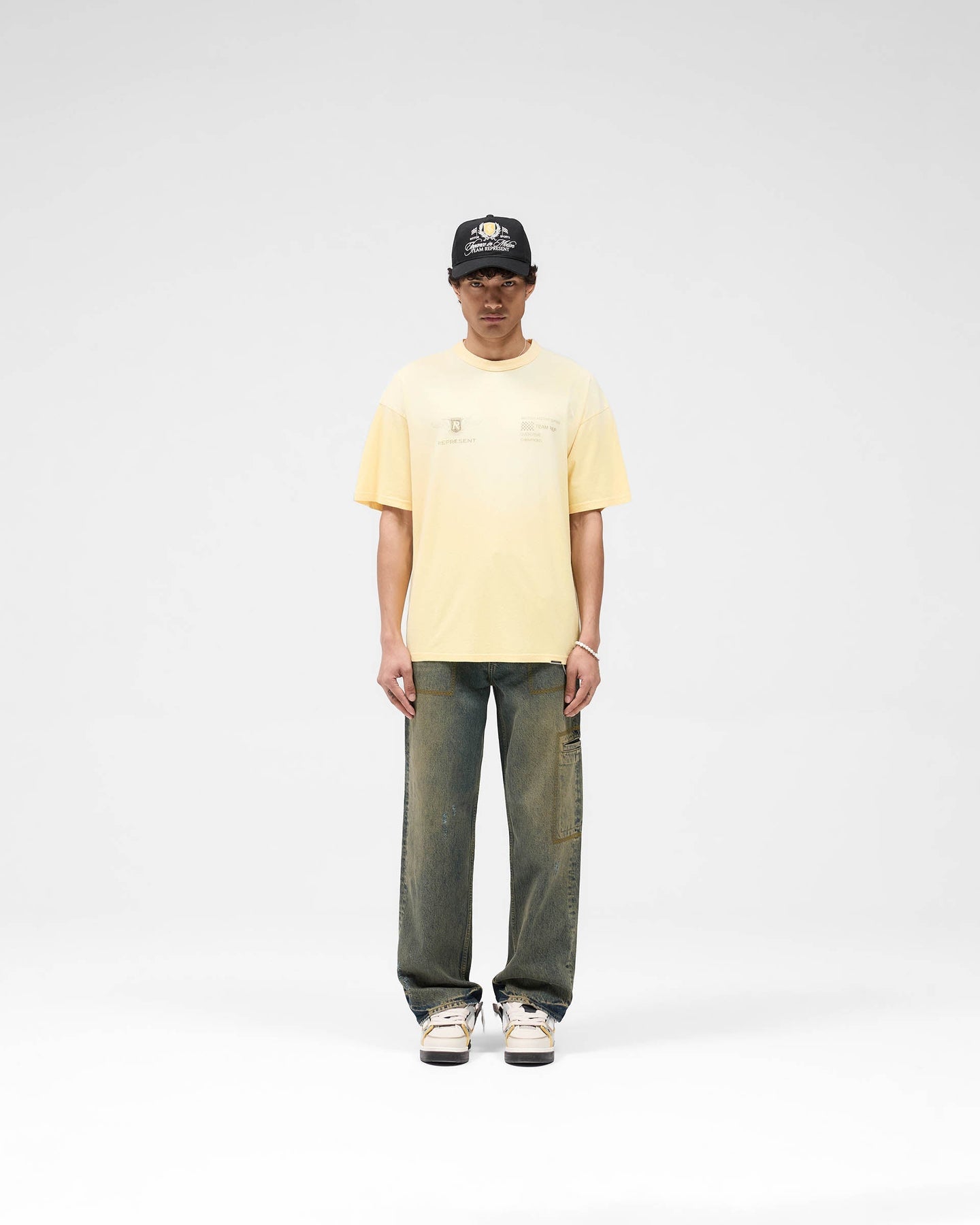 Introducing the Team Rep T-Shirt in Light Yellow, an essential crafted for everyday wear. Made from slub jersey fabric, this T-shirt delivers a soft, textured feel with a worn-in aesthetic.