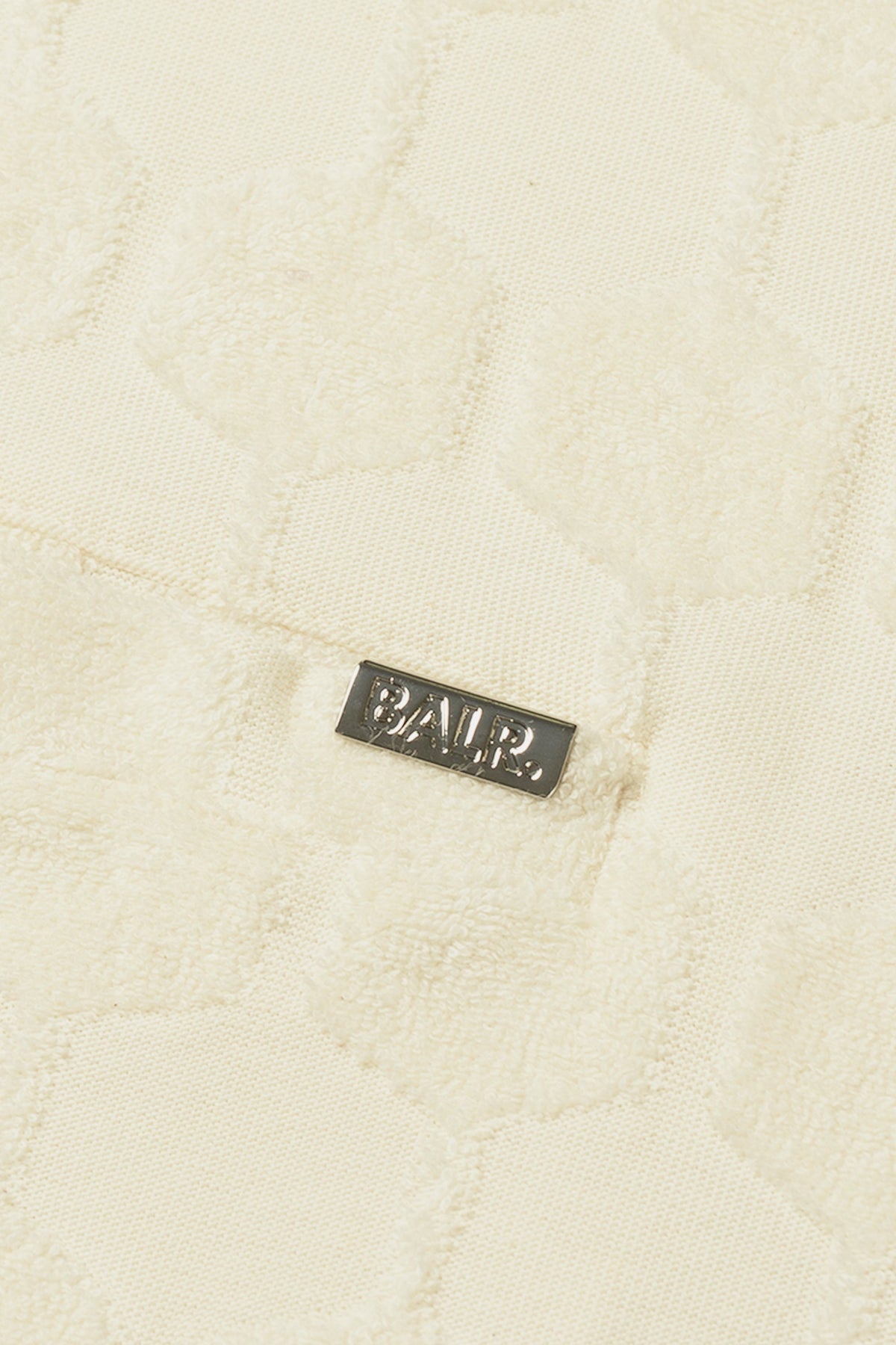 Introducing the Terry Box Shirt in sleek Light Beige. Made with soft toweling fabric in a unique hex shape, this shirt offers both style and comfort. The metal clip on the chest pocket adds a touch of flair to this versatile piece. Upgrade your wardrobe with this must-have shirt.