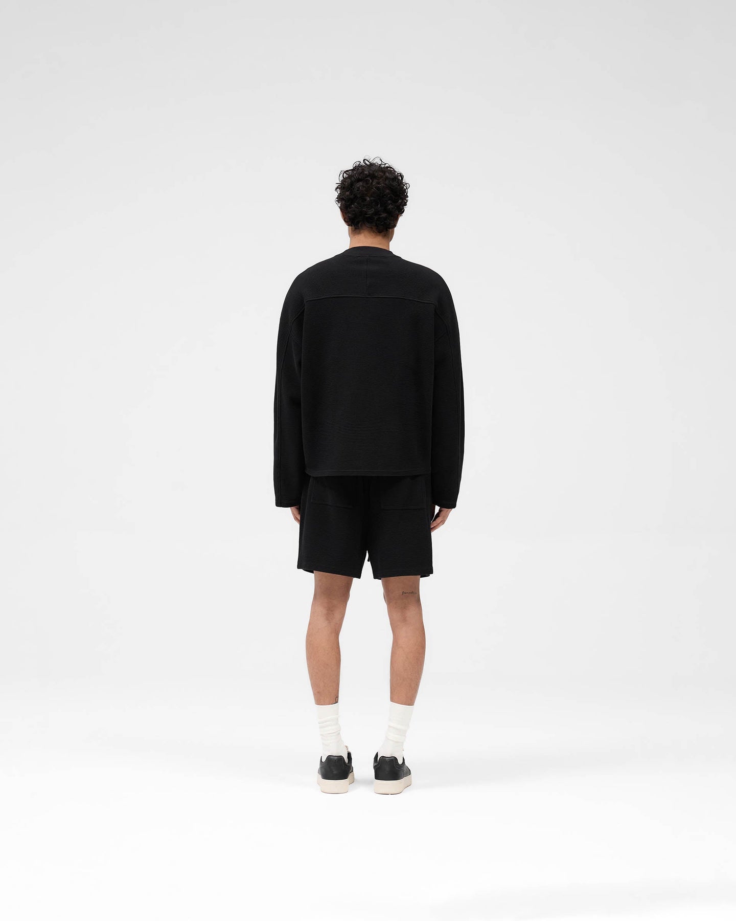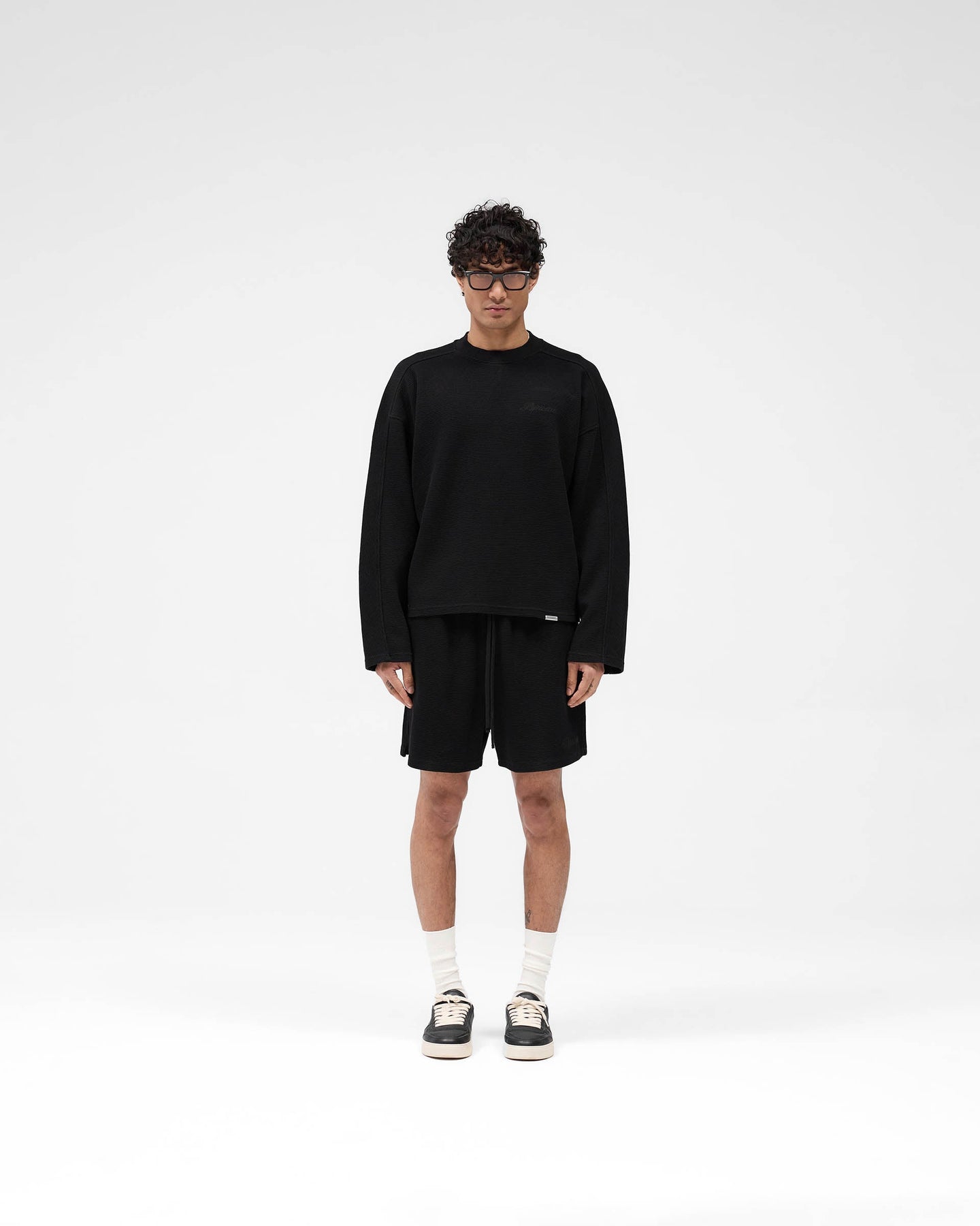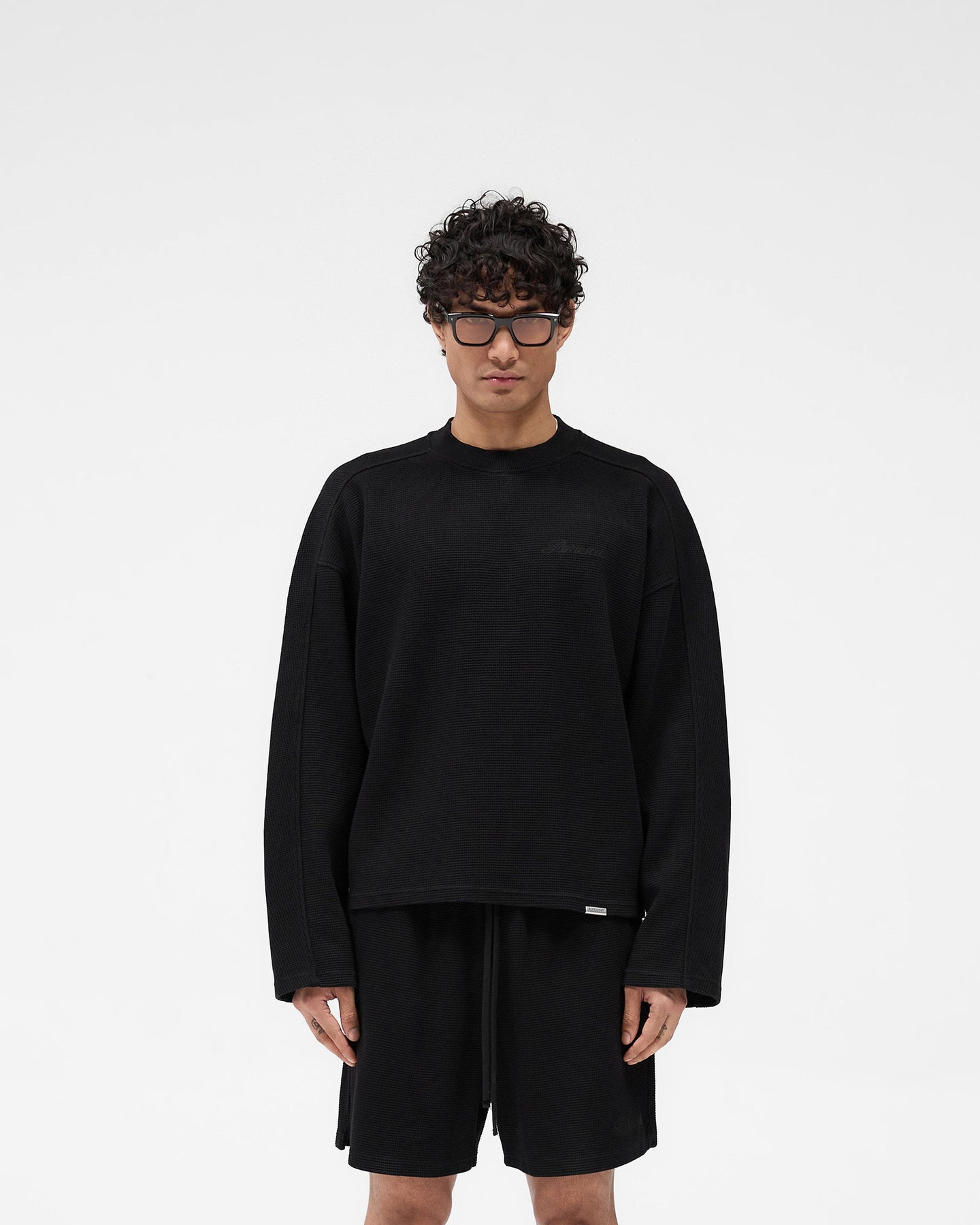 Introducing the Waffle Long Sleeve T-Shirt in Black, a refined staple crafted from 100% cotton with a premium interlock waffle fabric for texture and durability.