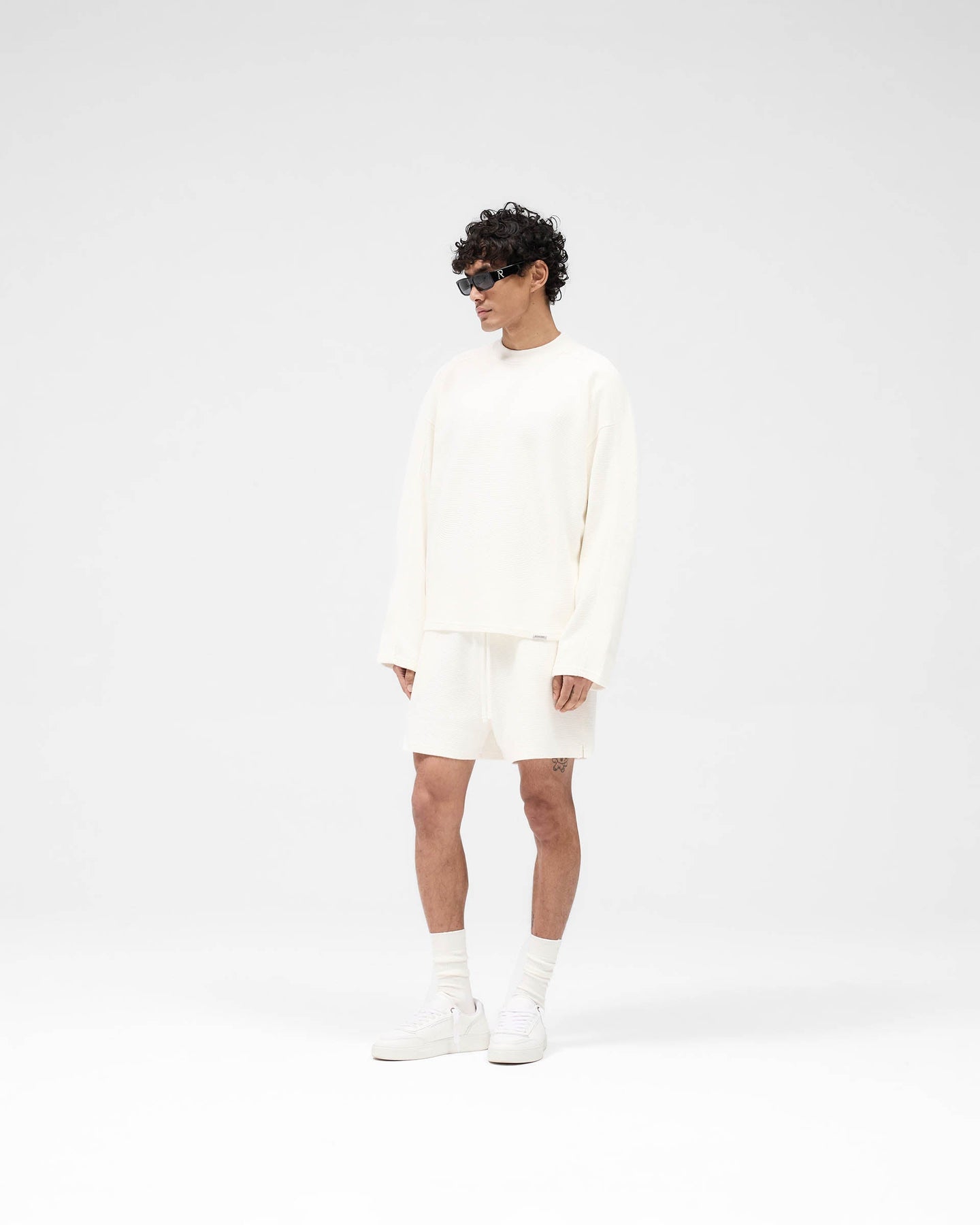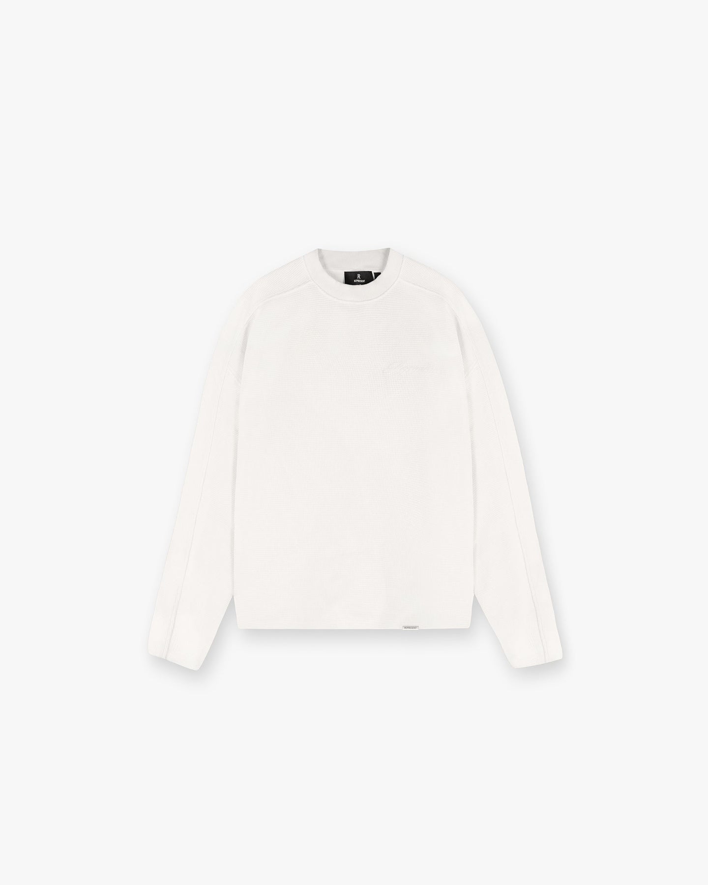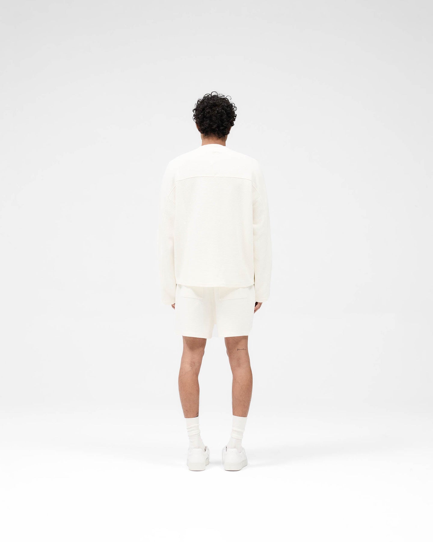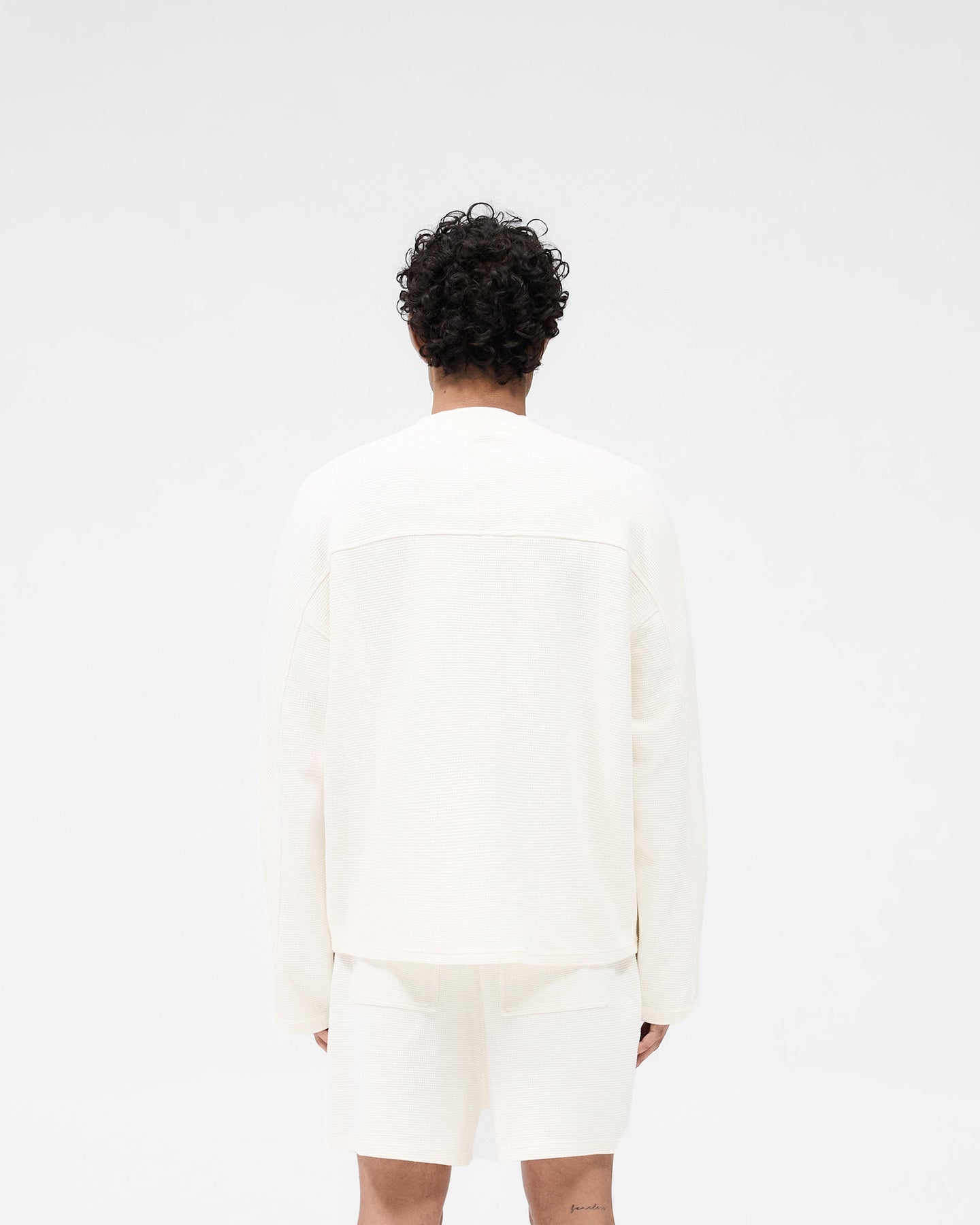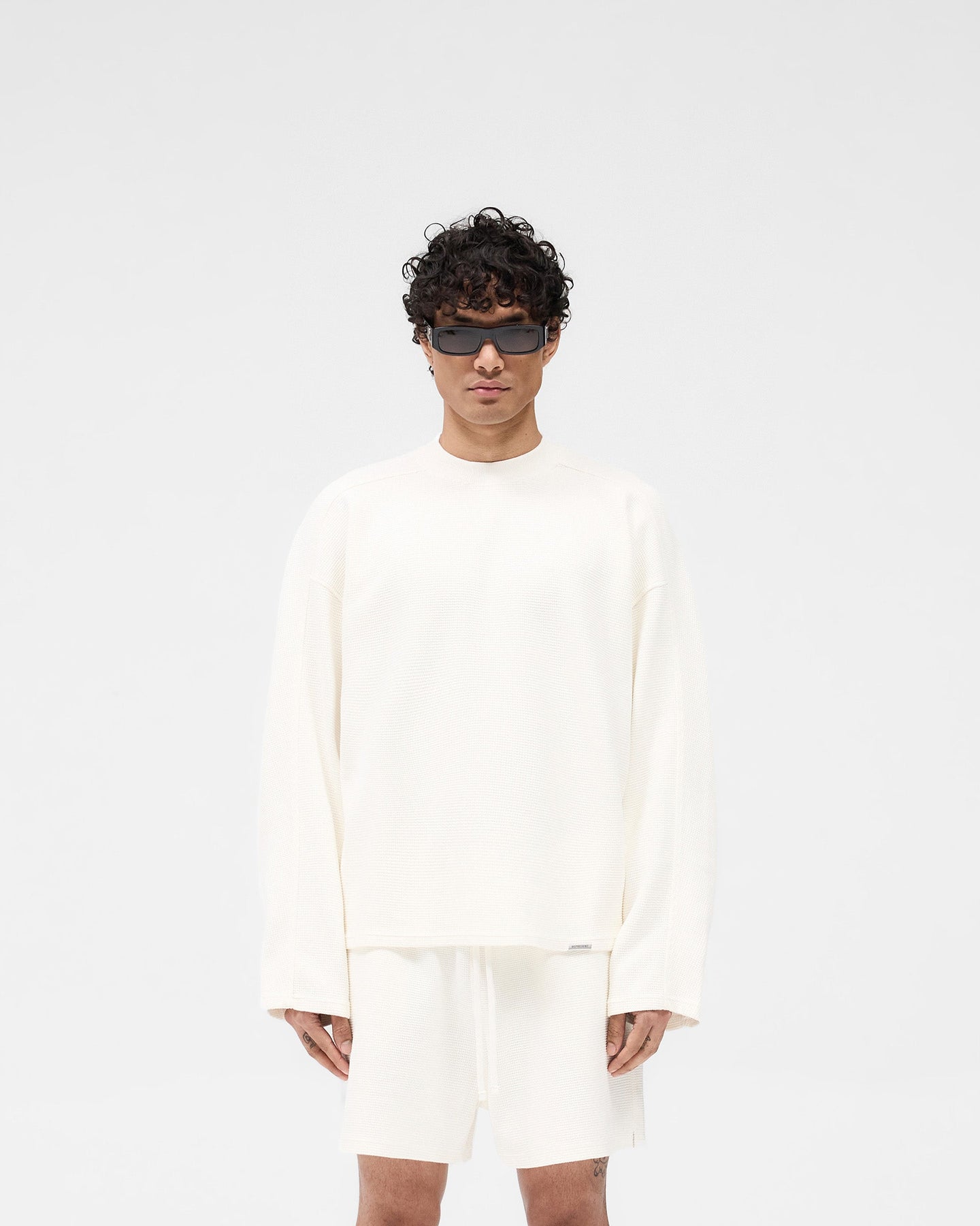 Introducing the Waffle Long Sleeve T-Shirt in Flat White, a refined staple crafted from 100% cotton with a premium interlock waffle fabric for texture and durability.