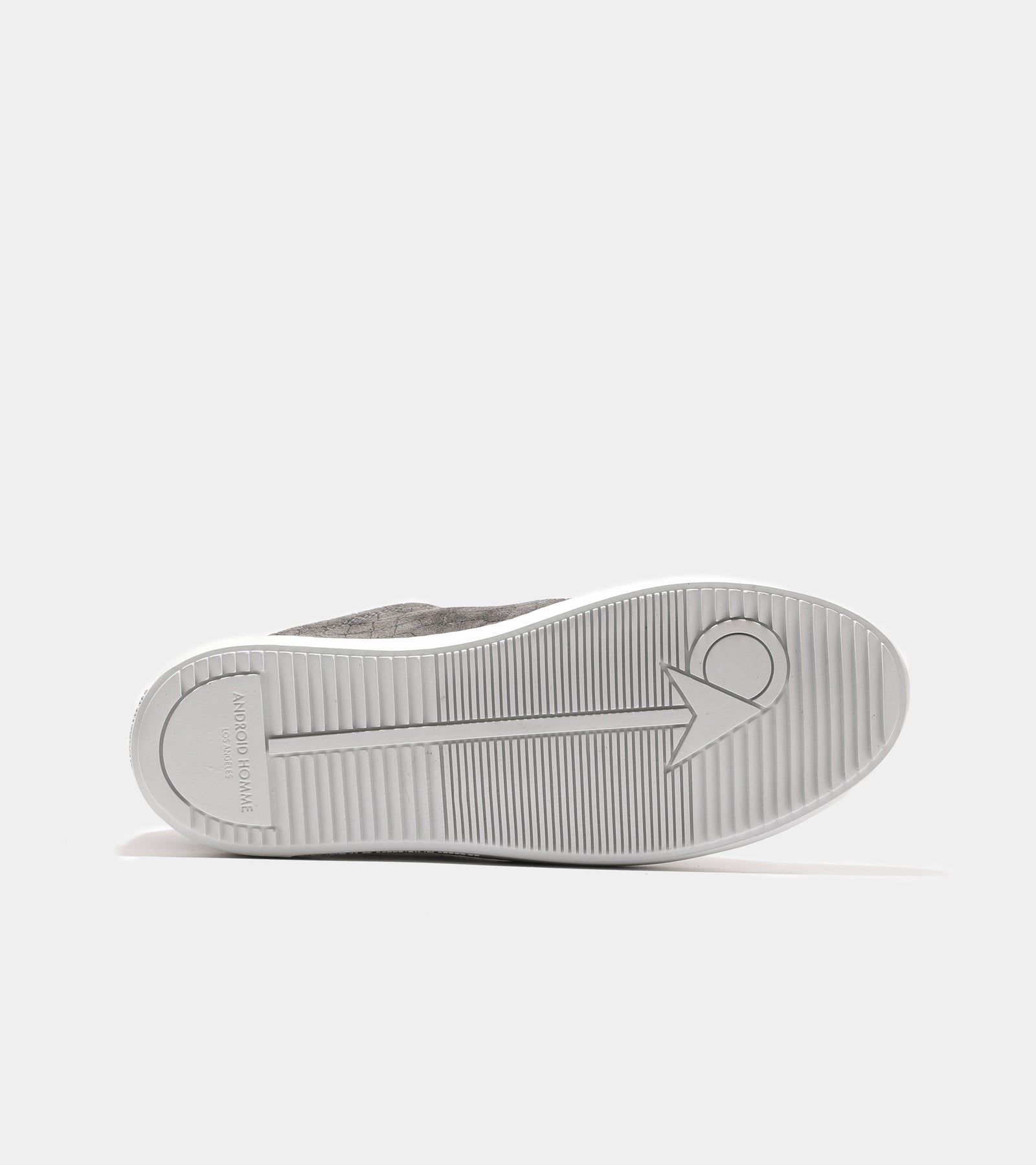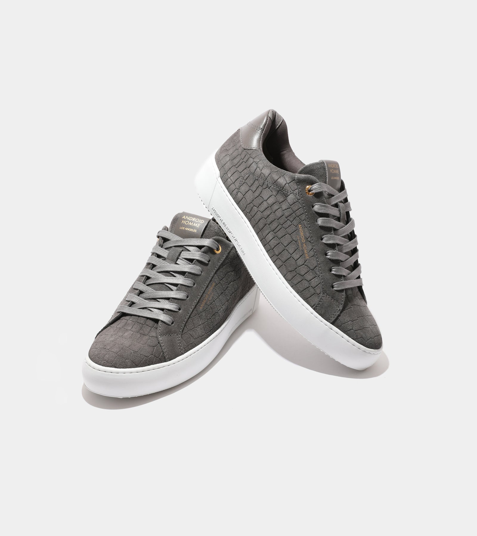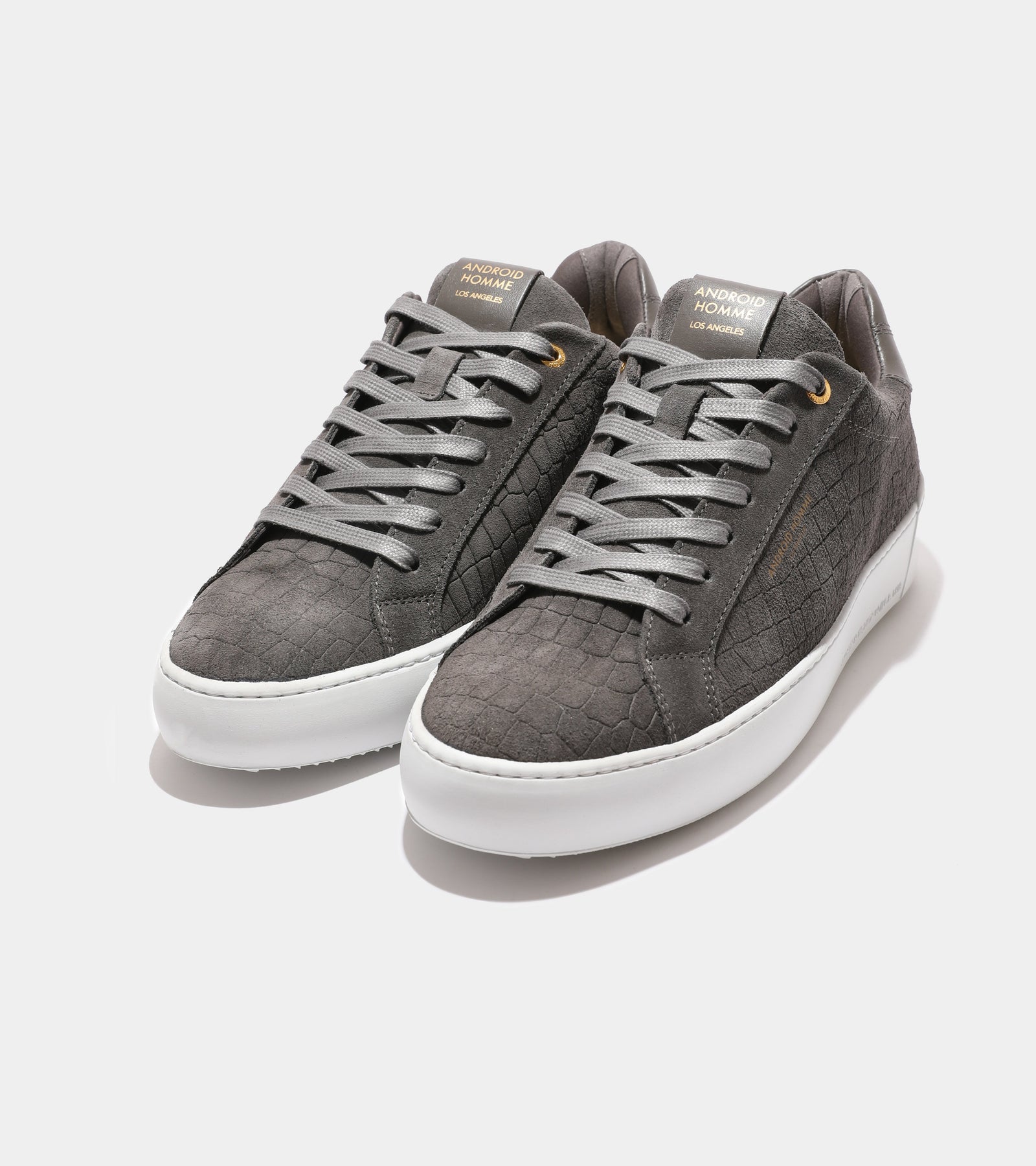 Embrace timeless sophistication with the classic Android Homme Caiman Croc emboss. Adding definition to the detailing with the raised texture of a classic crocodile skin pattern. Realised in luxury Portuguese suede across new seasonal colours Brown, Beige and Charcoal on the simple Zuma upper and also classic white nappa leather option on the Venice Low.